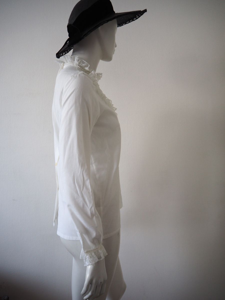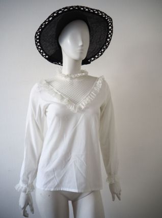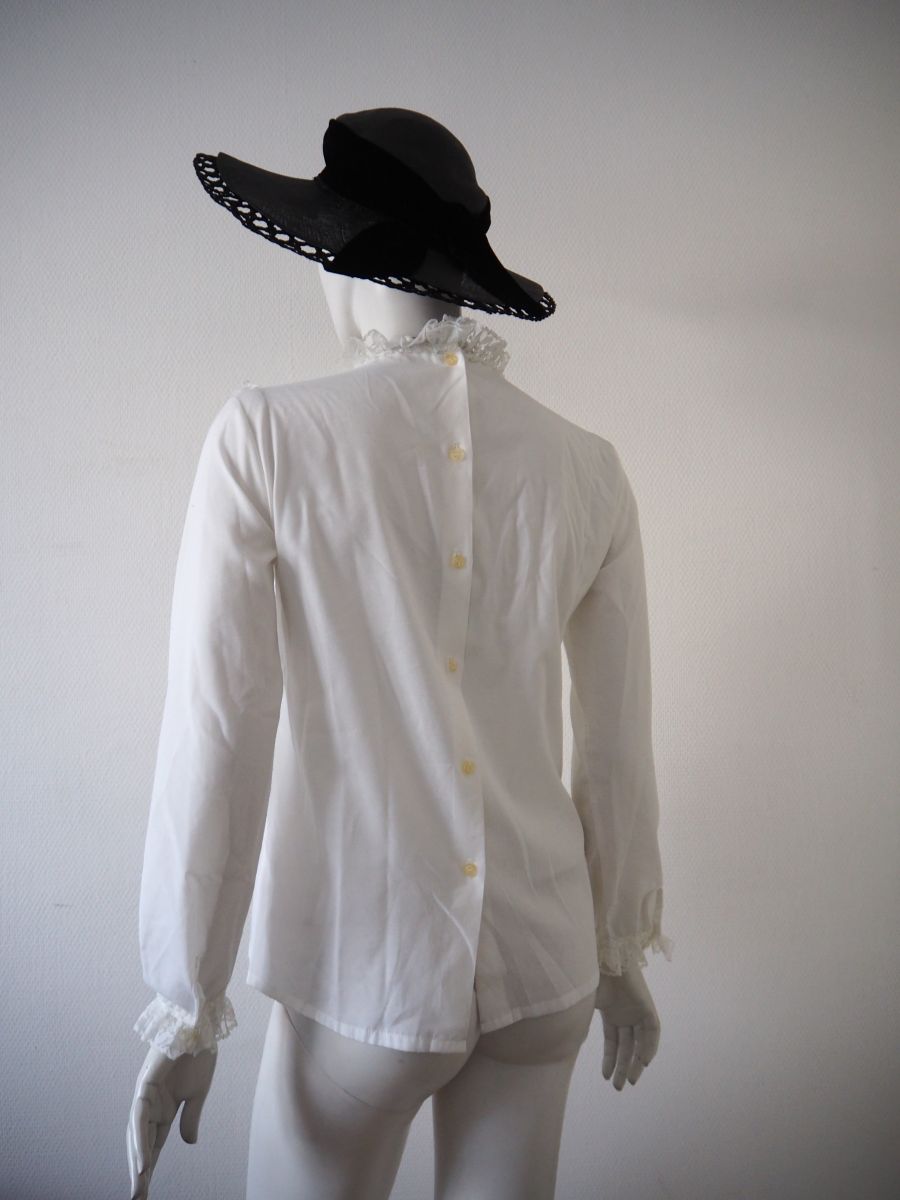 Chemisier col victorien froufrous dentelle rococo vintage 70