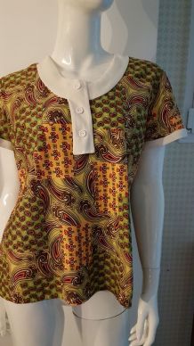 Le chemisier se ferme par six boutons en plastique dans le dos.