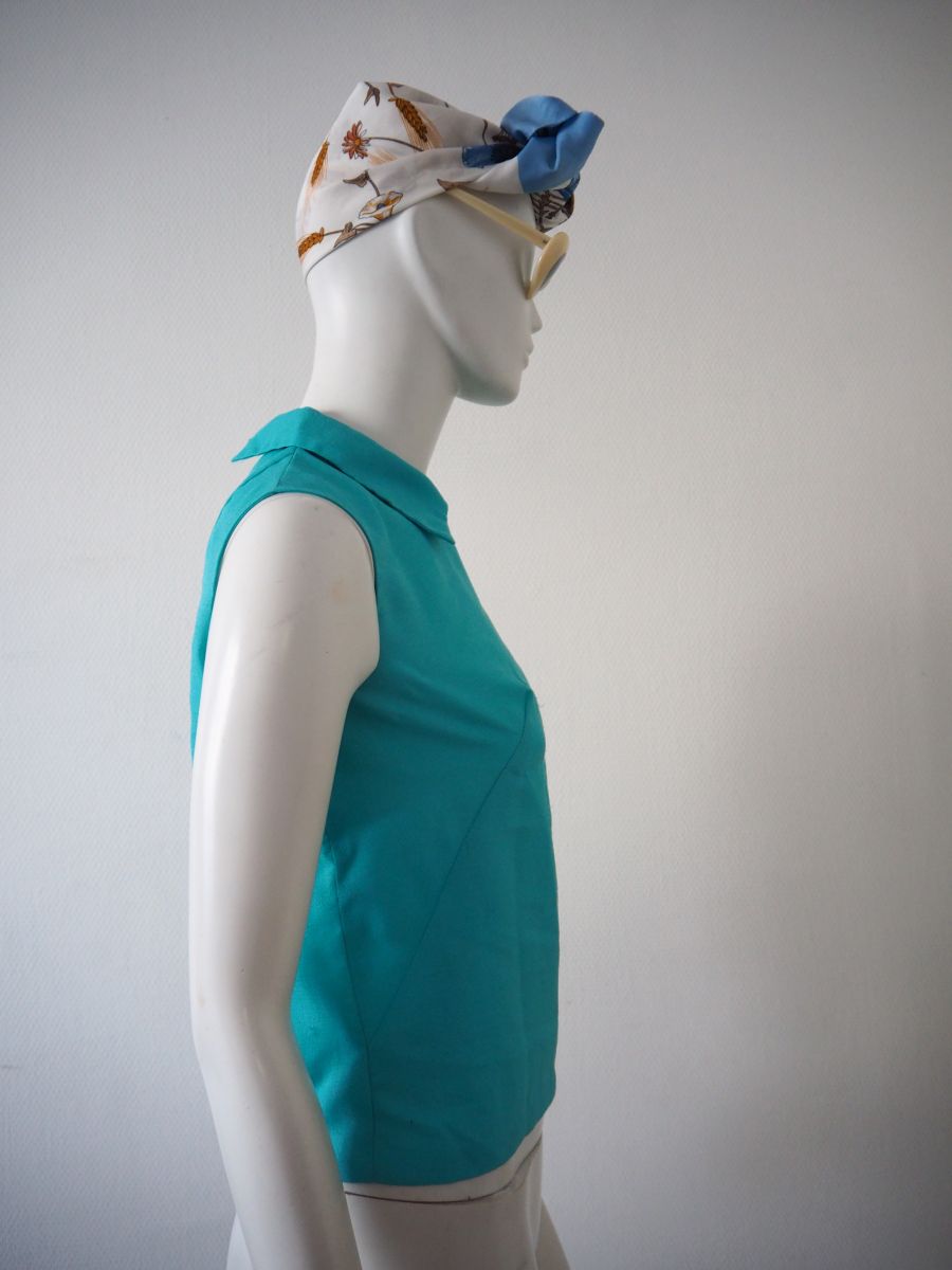Jolie petite blouse turquoise datant des années 1960.