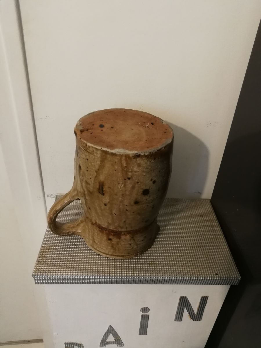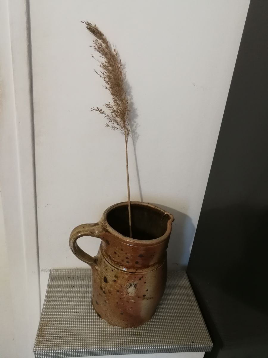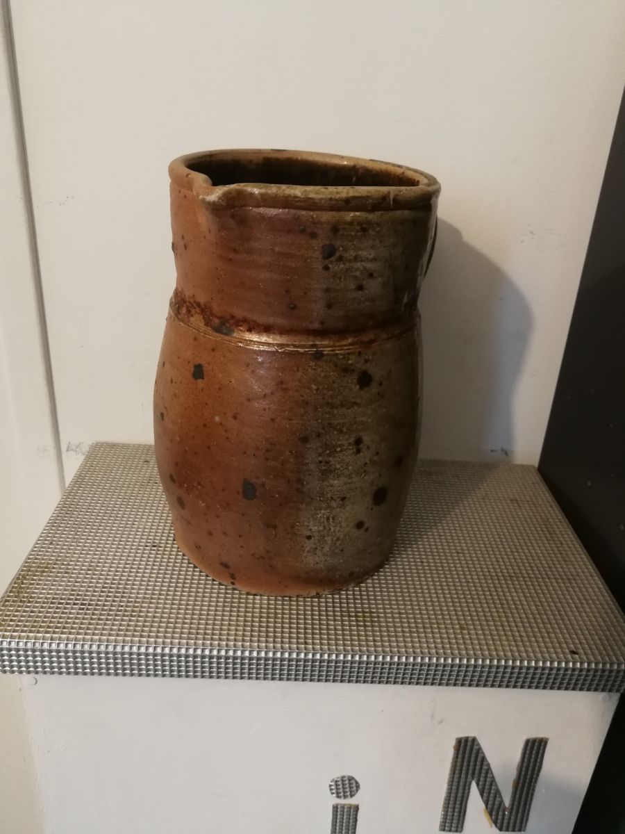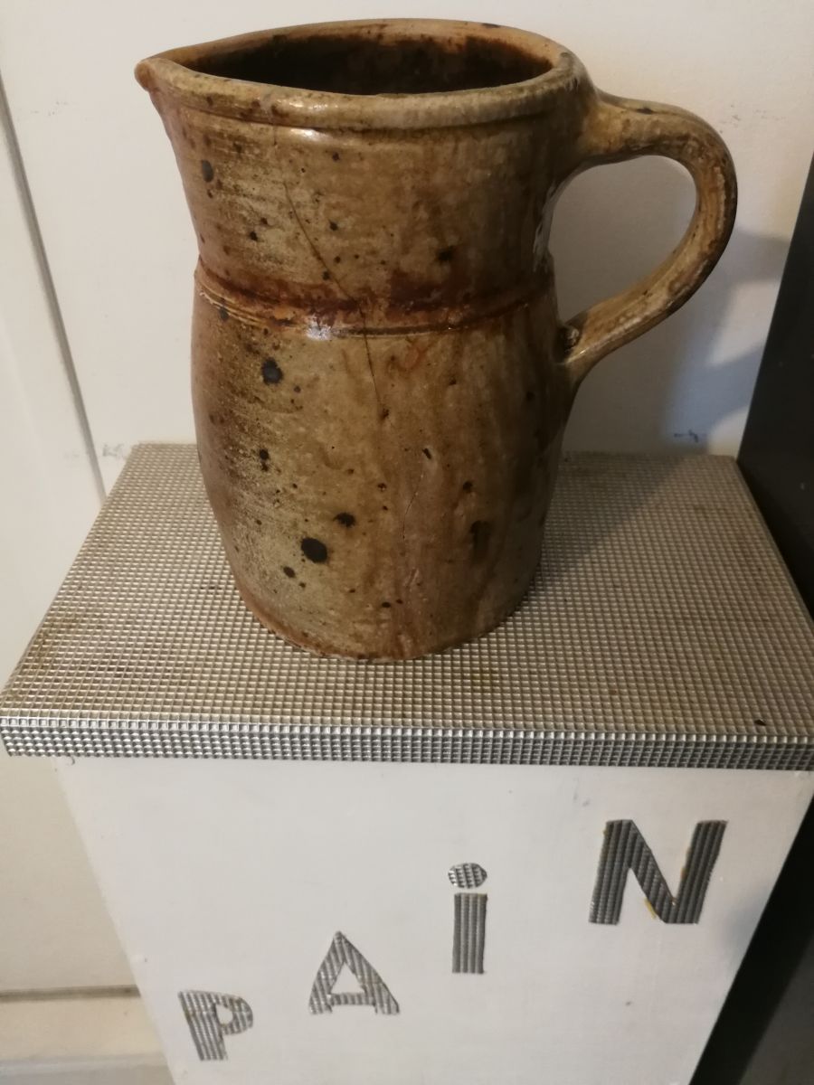 Broc en grès vintage avec ses différentes nuances, dans son jus avec quelques traces du temps.
