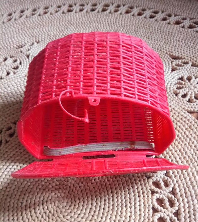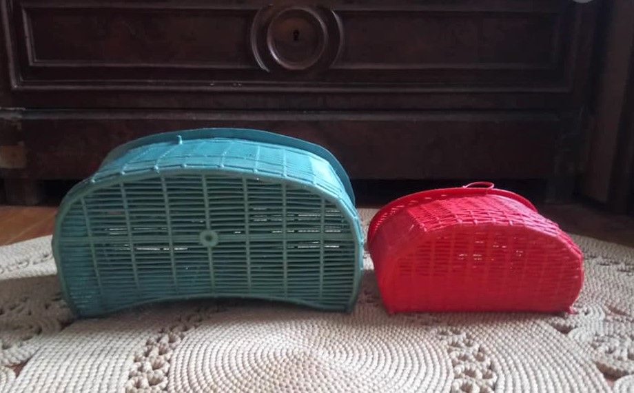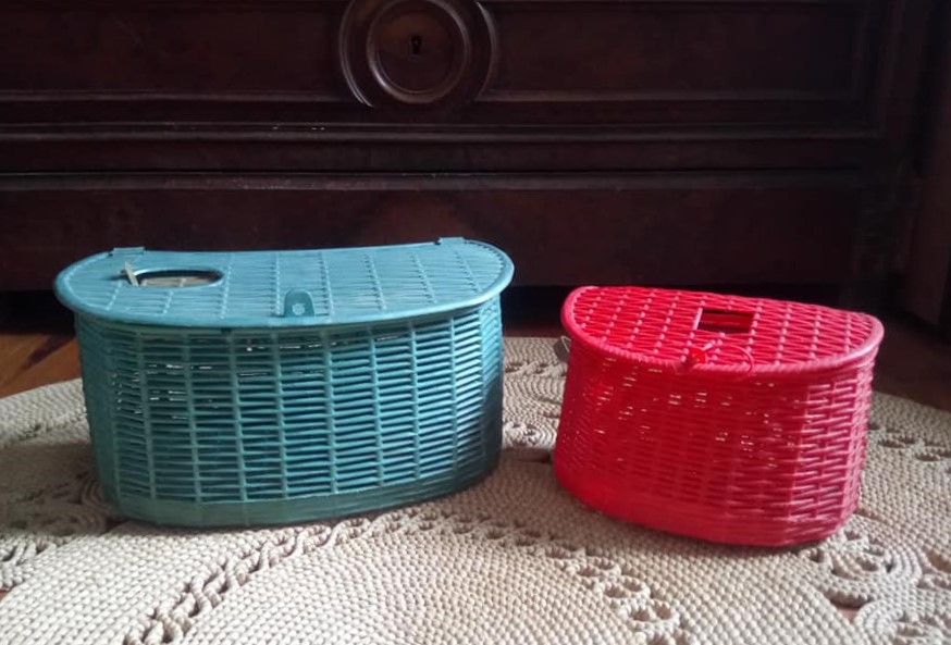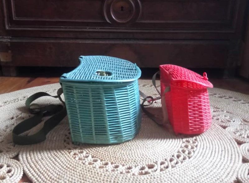 Bon état (à noter des traces du temps sur la bandoulière du panier rouge - voir la dernière photo)