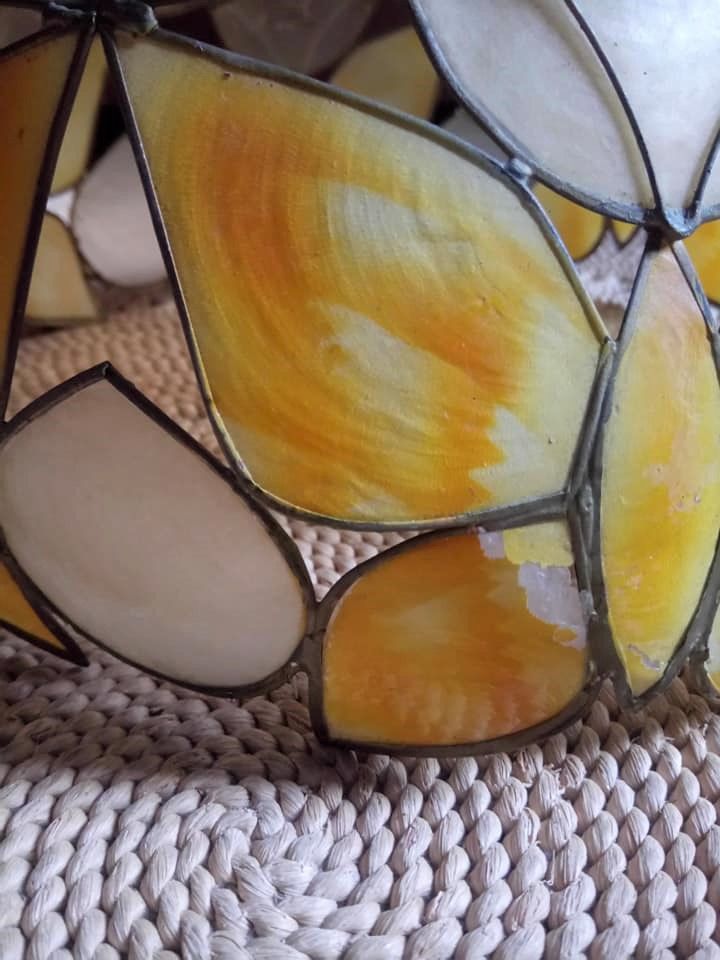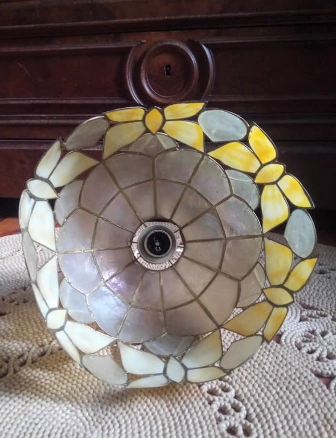 Suspension/lustre en nacre et en laiton