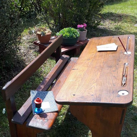 Avec 2 plumiers porcelaine, 1 plume et 1 compas d'époque en cadeau.