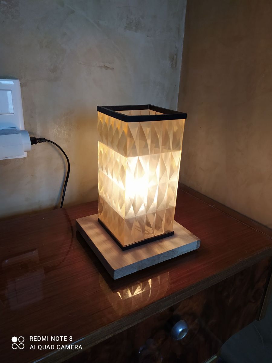 Le plafonnier a été retourne et fixe sur un plateau en chêne massif