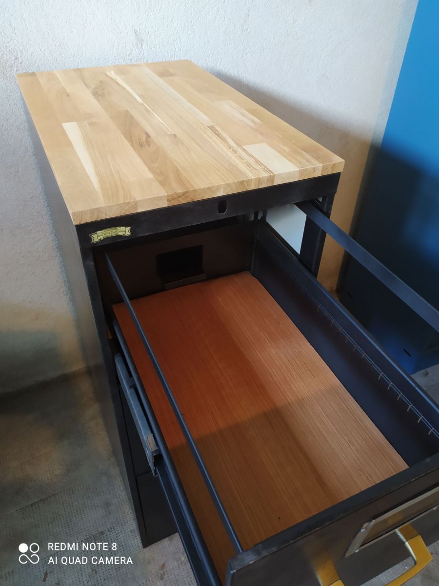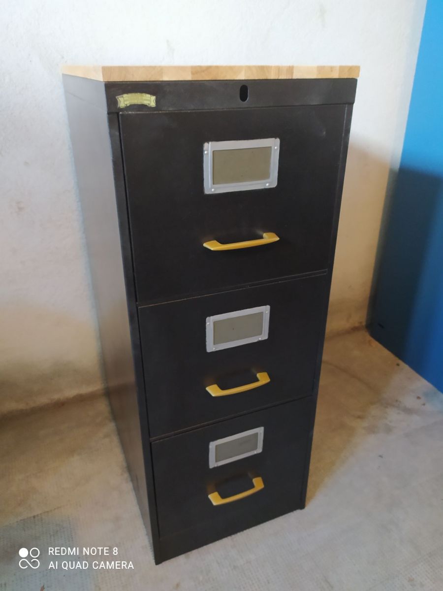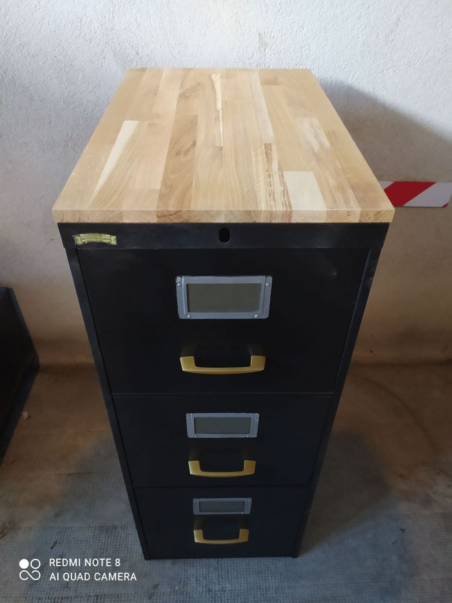 Casier industriel 3 tiroirs ronéo année 70 restauré en noir martelé de chez hammerite