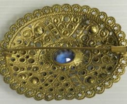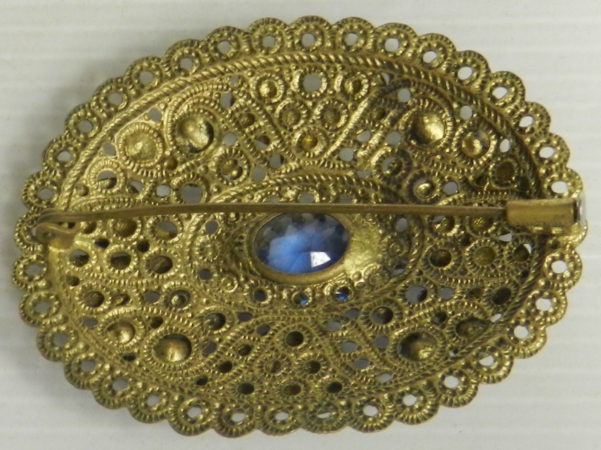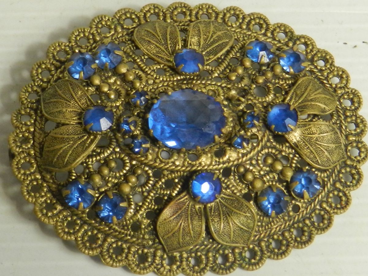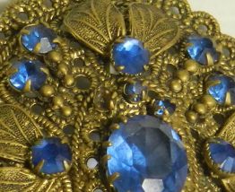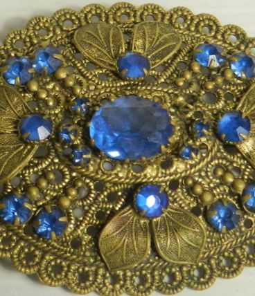 Cette adorable Broche vintage aux perles bleues sera d'un bel effet sur un vêtement. A signaler une mini perle manquante, à peine visible.