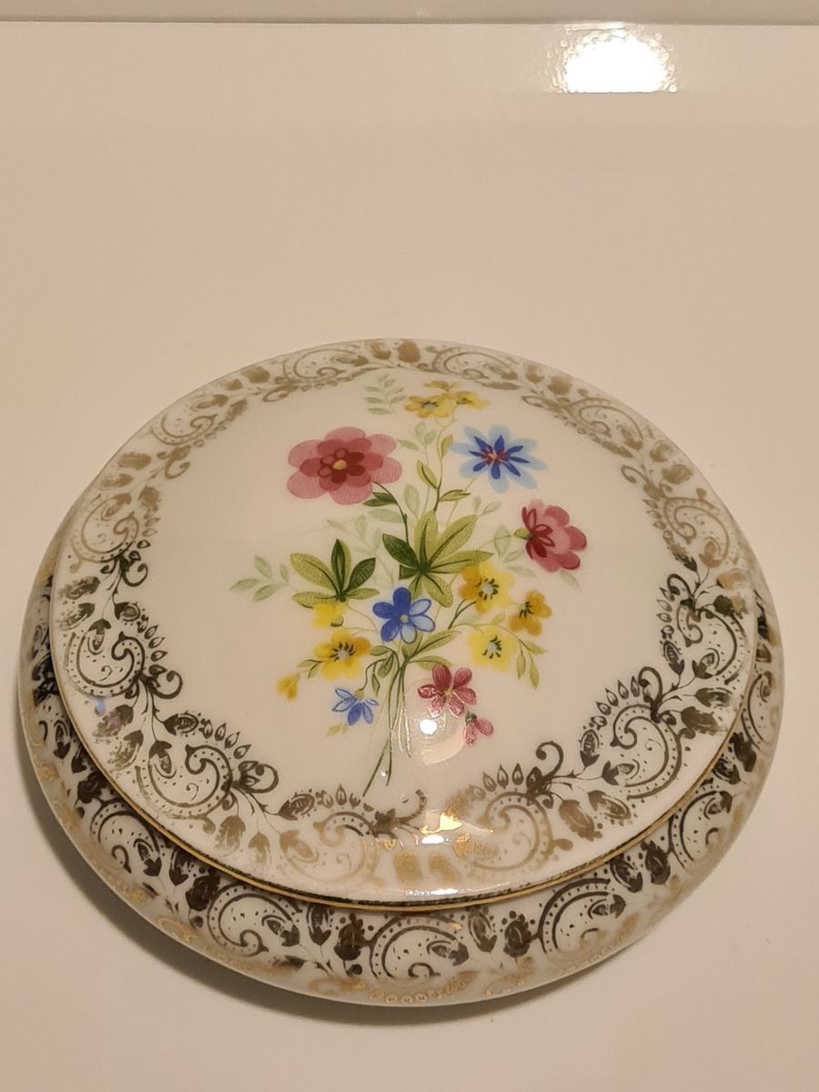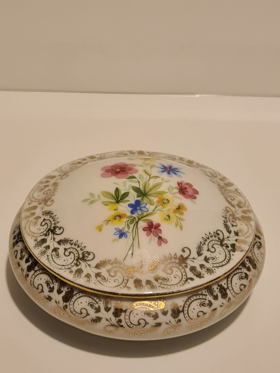 Boîte Porcelaine de Limoges décors Floral en excellent état, sans fêle Dimensions : H. 3,5cm X L. 11,5cm X P. 11,5cm