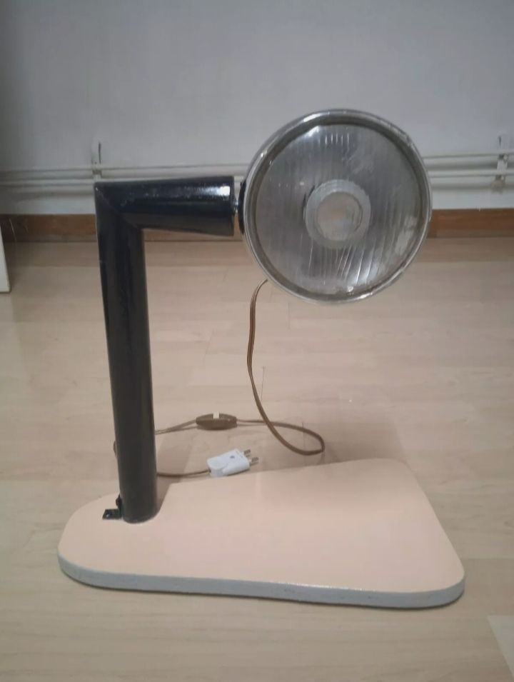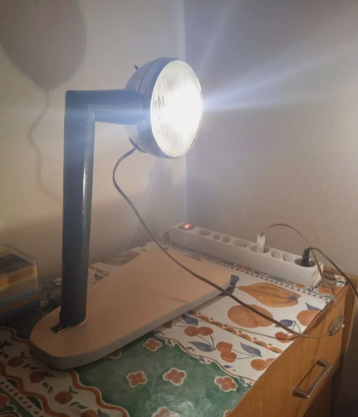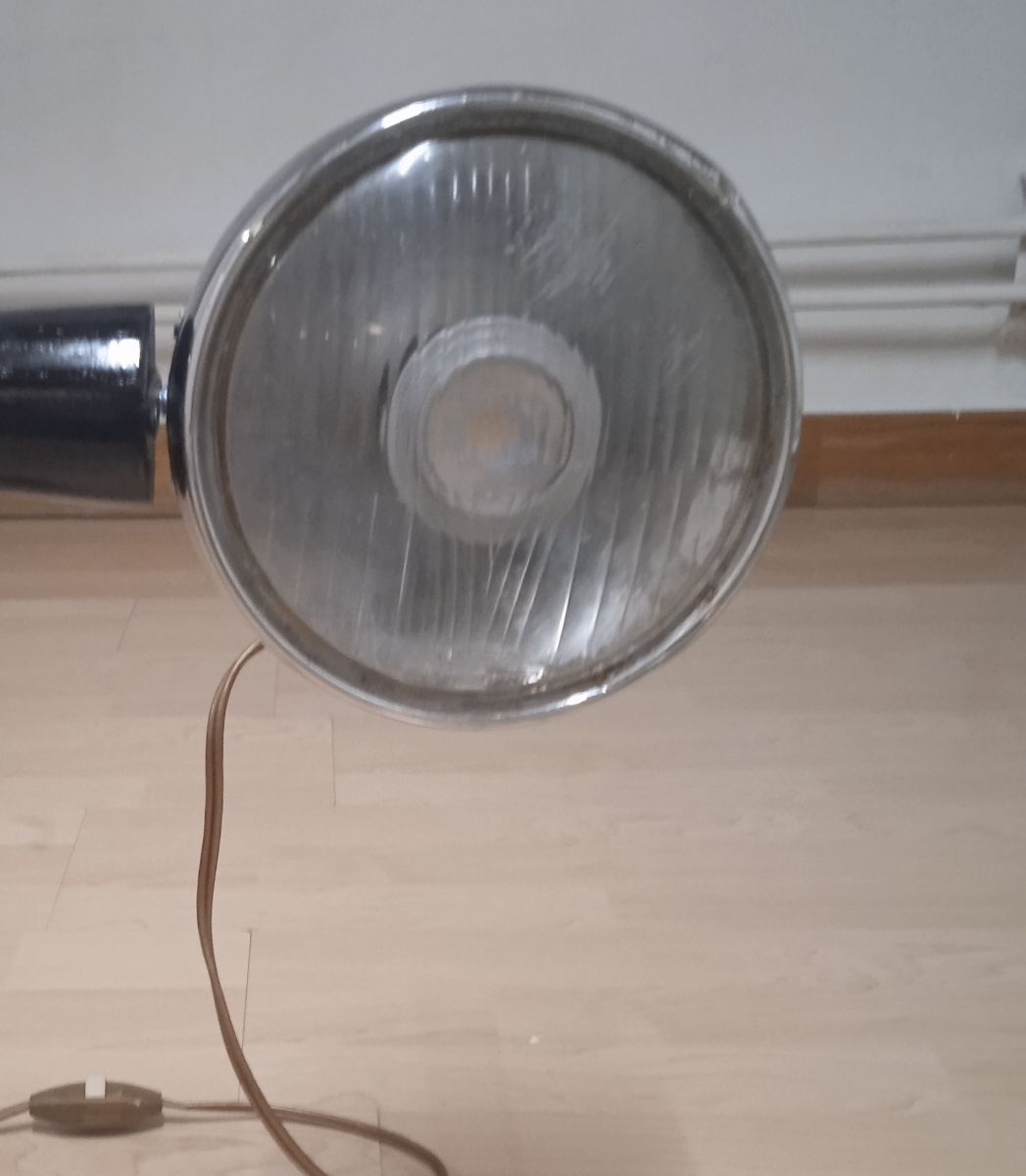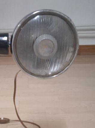 Lampe de chevet, avec phare de voiture ancien dans son jus ,faite par moi même, tête pivotante, équipé d'une, douille GU10, une ampoule led de 3,8V/50W (Lumière chaude).