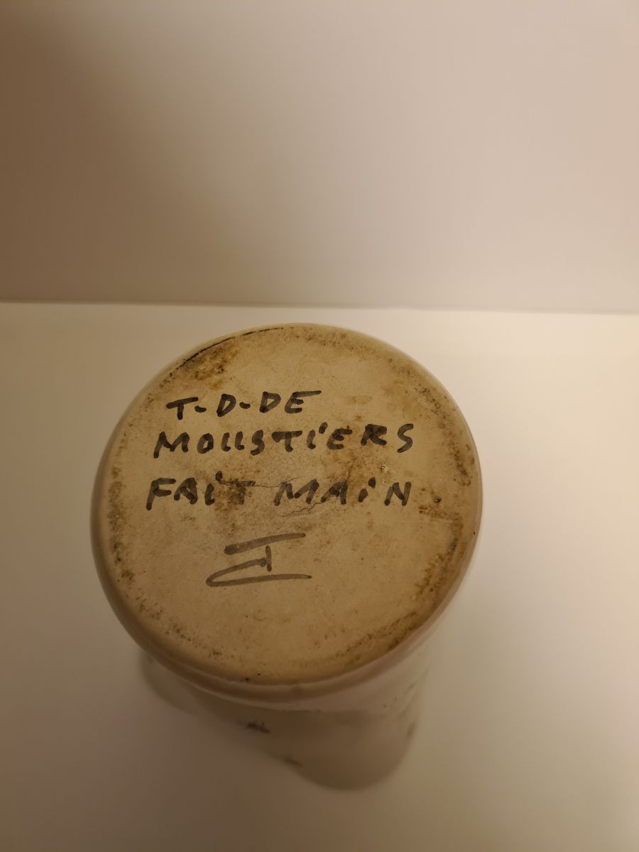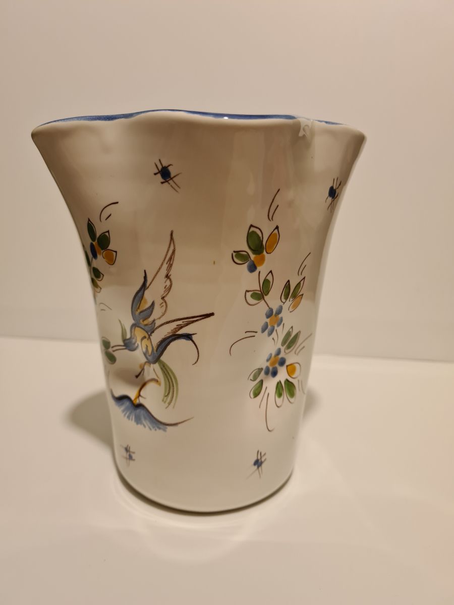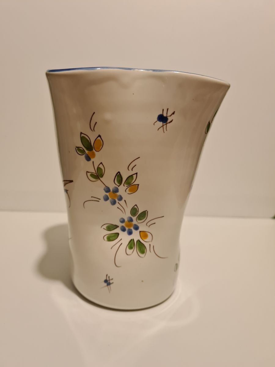 Vase décor Moustier en excellent état sans fêle. Dimensions : H. 19cm X L. 10cm X P. 10,5cm