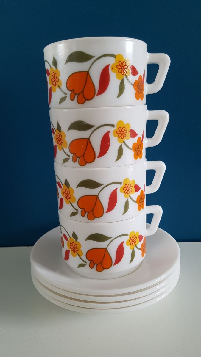4 tasses et sous-tasses Arcopal