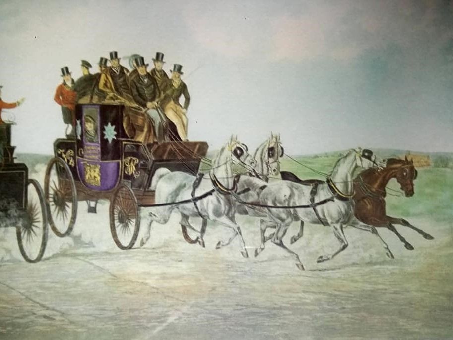 Lithographie anglaise : "The Brighton daymails passing over hookwood common" de William Joseph Shayer (1811-1892)
