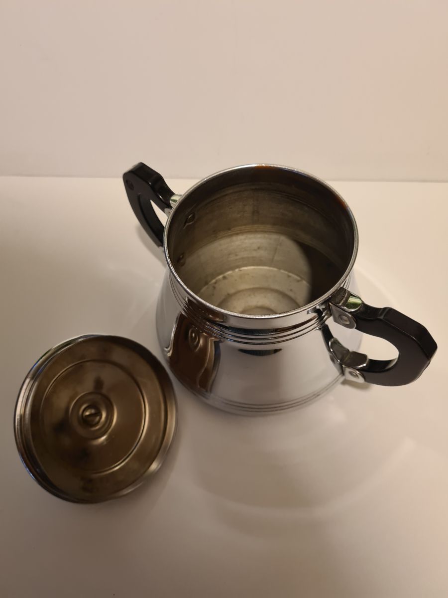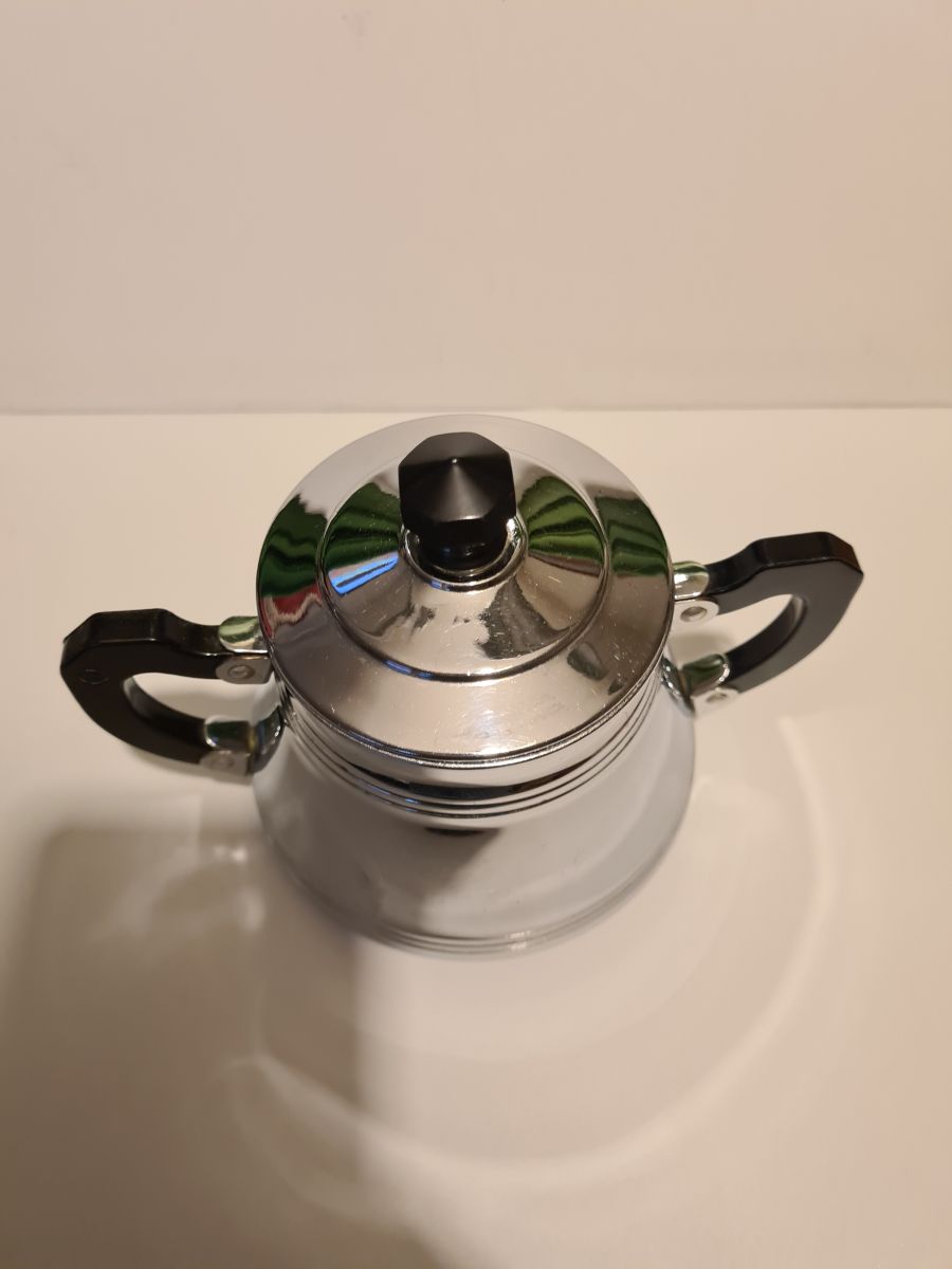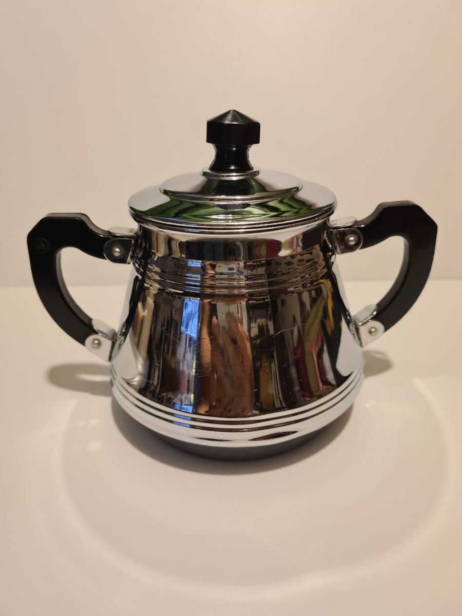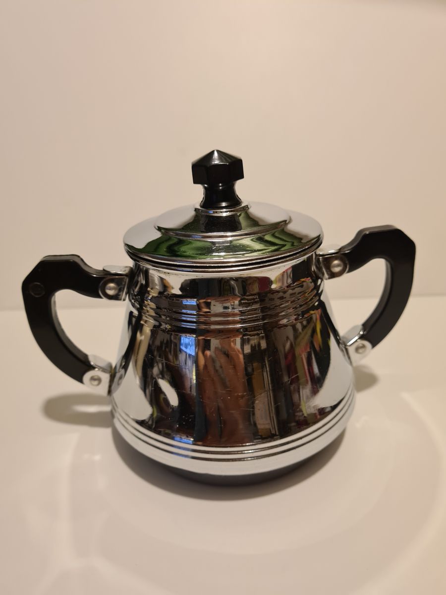 Sucrier vintage en Métal Chromé en bon état, quelques traces d'usages voir photos Dimensions : H. 15cm X L. 17cm X P. 9cm