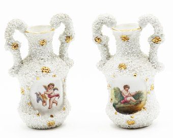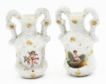 Paire de vases cherubin avec des granulés très original dans les tons blancs.