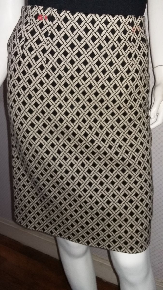 . Jupe droite étiquette T 40 : courte, toute doublée, ceinture fermée par zip invisible dos, fente arrière
