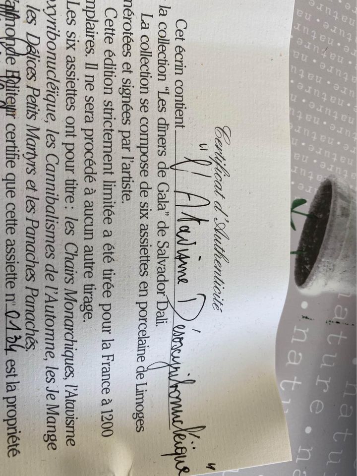 Vend 3 assiettes de collection Salvador Dali signe par l’artiste en porcelaine de limoge