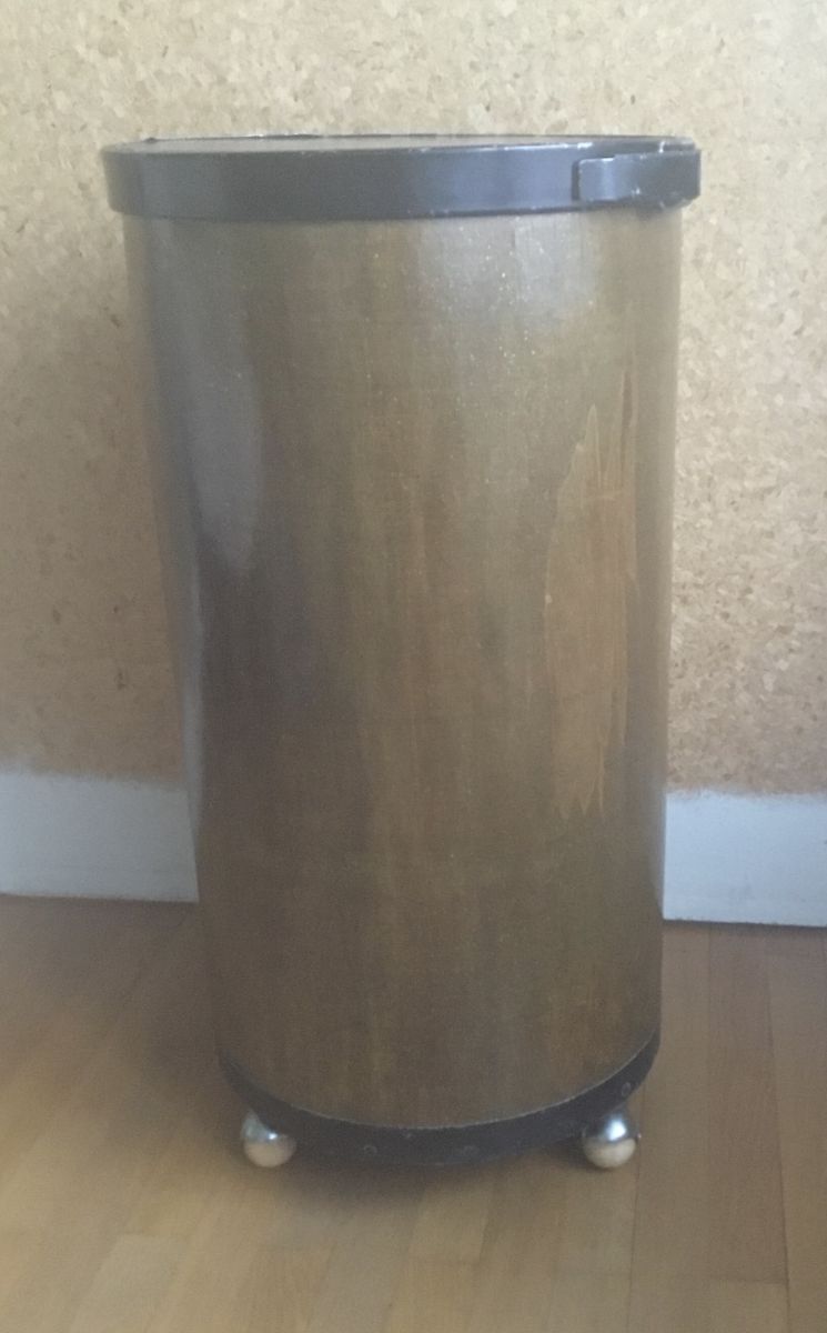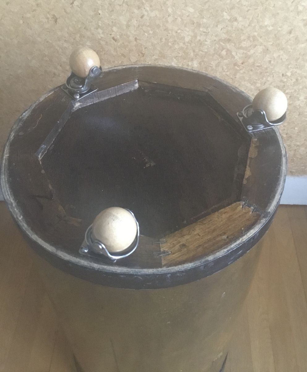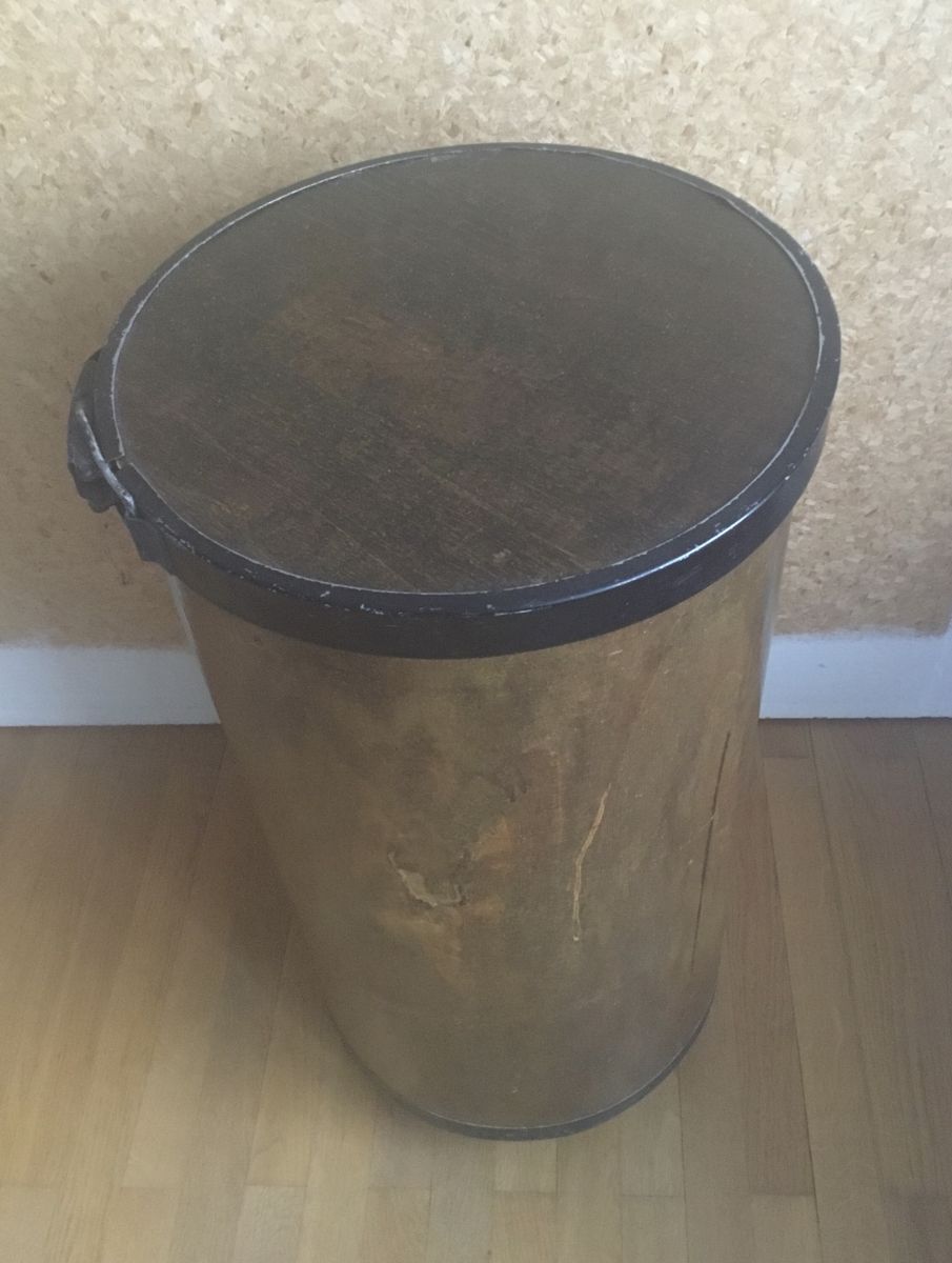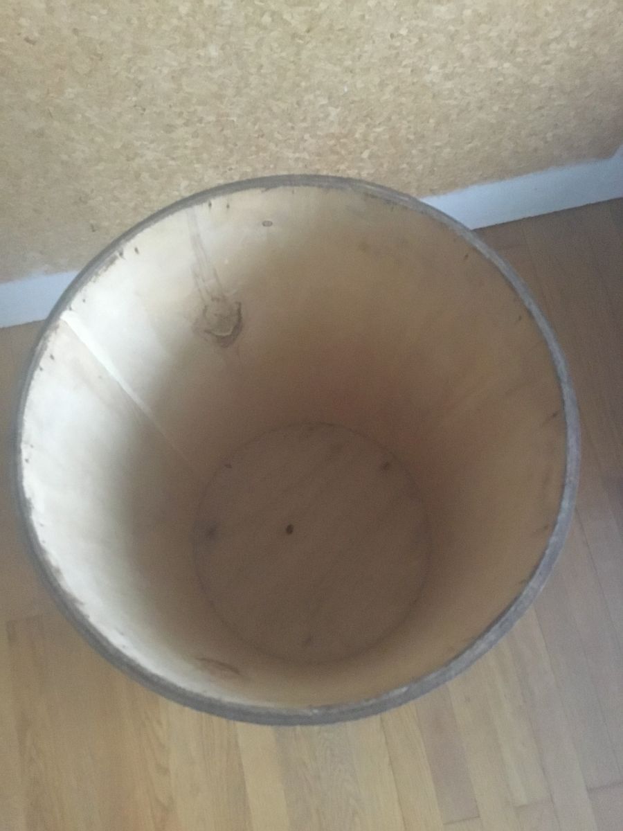 Bidon de transport de marchandises en bois avec cerclage de fermeture en fer. Celui ci pourra cacher vos plaids et couvertures proche du canapé. Monté sur roulette celui ci peut servir de table de nuit comme de bout de canapé en support d’une lampe d’ambiance.