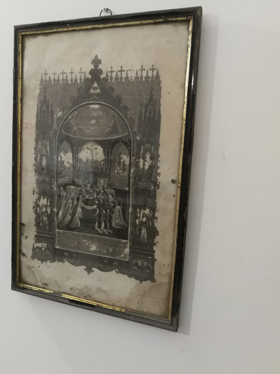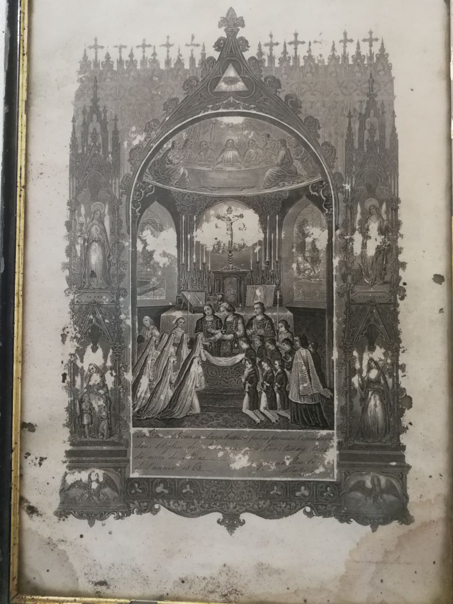 Cadre représentent une cérémonie de communion dans une église en 1863.