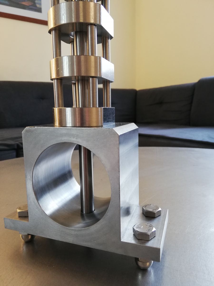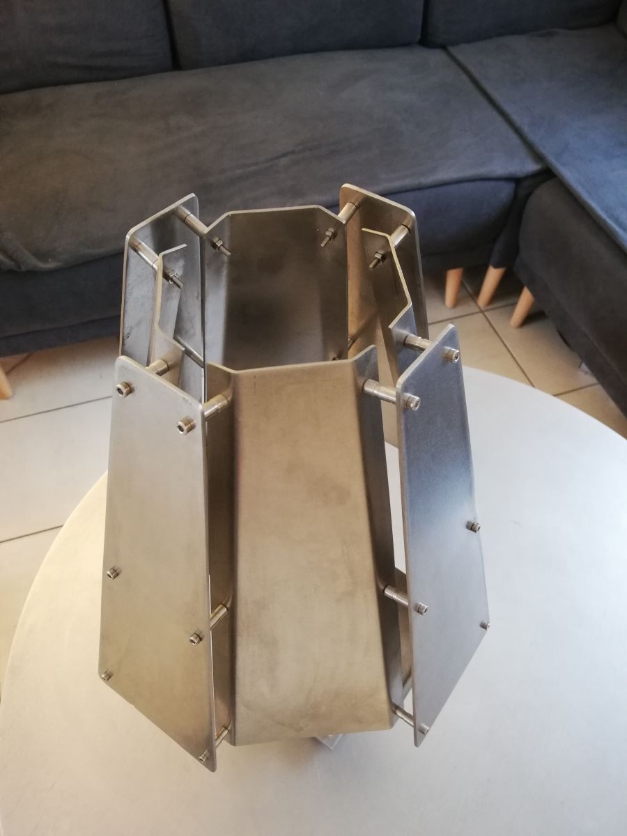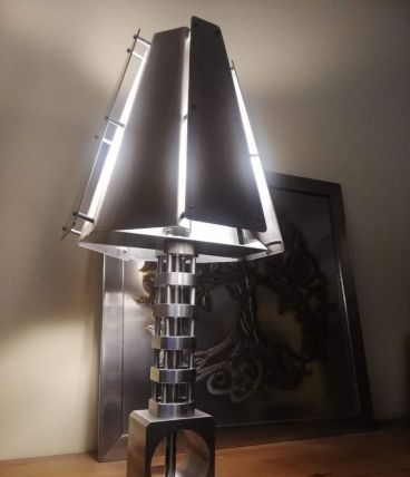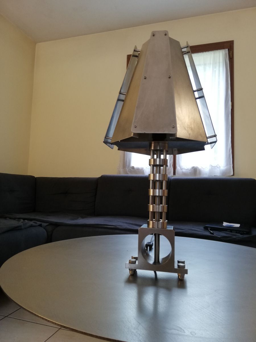 Lampe art déco industriel avec pièces inox usinées dans la masse.