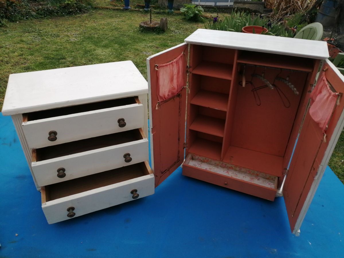 armoire 4 étagères plus ses cintres d'époque et son tiroir bas ainsi que son transat