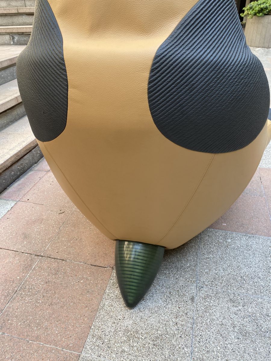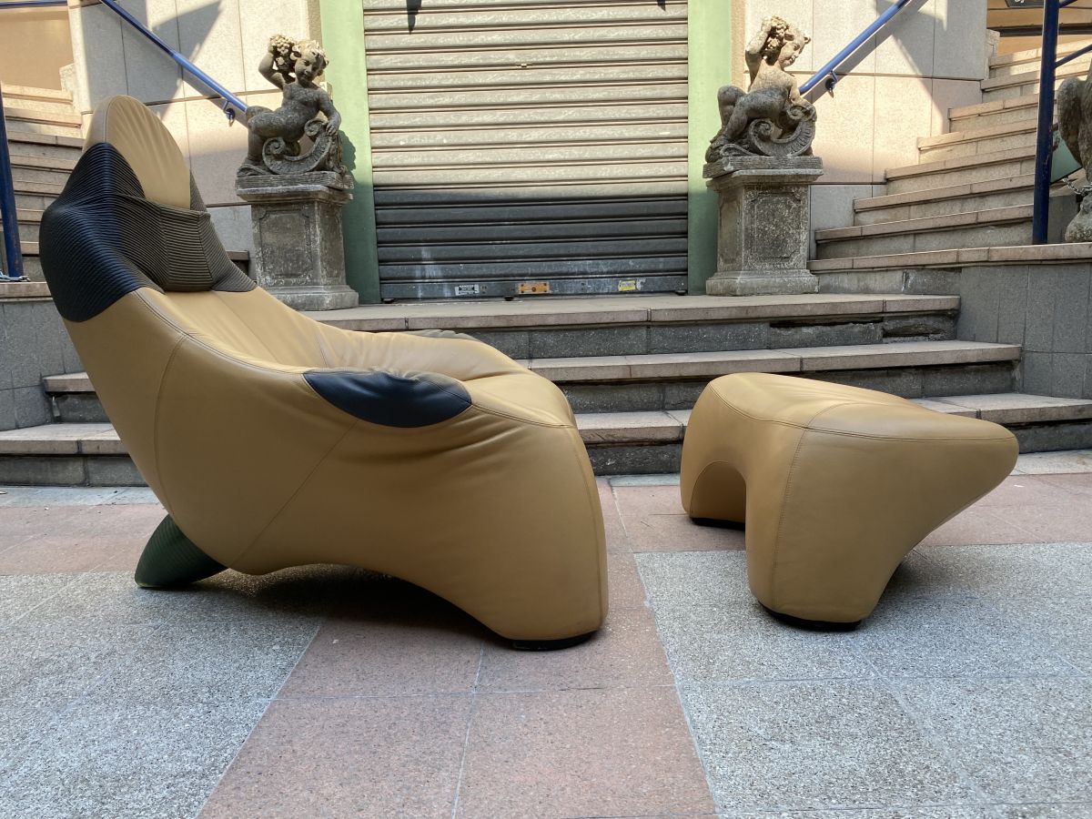 Structure métallique garnie de mousse et recouvert de cuir crème