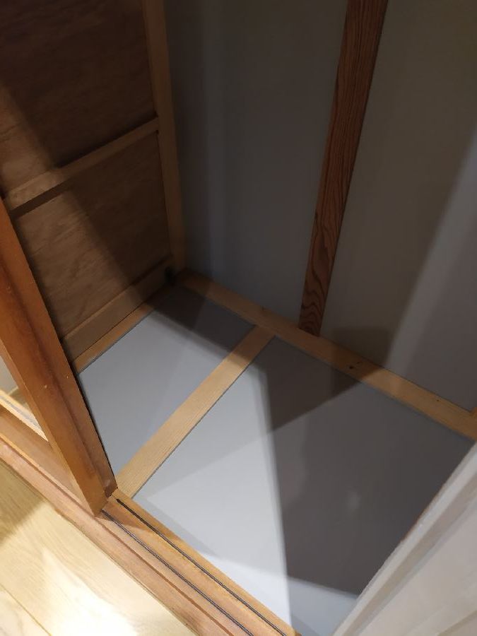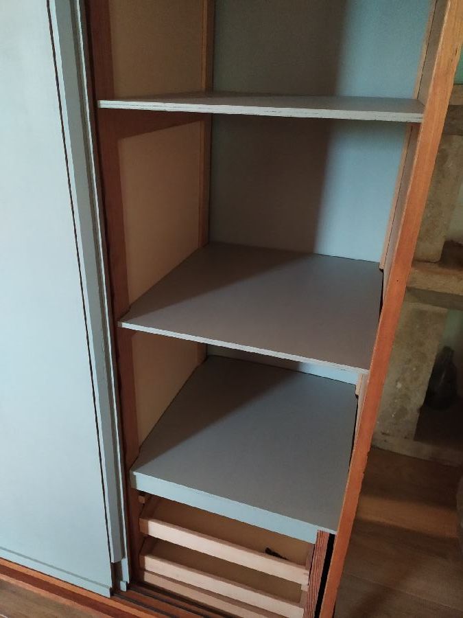 je suis interessée par votre armoire, qu'y a t il derrière le miroir? A la place de la penderie, pourrait on mettre des étagères?