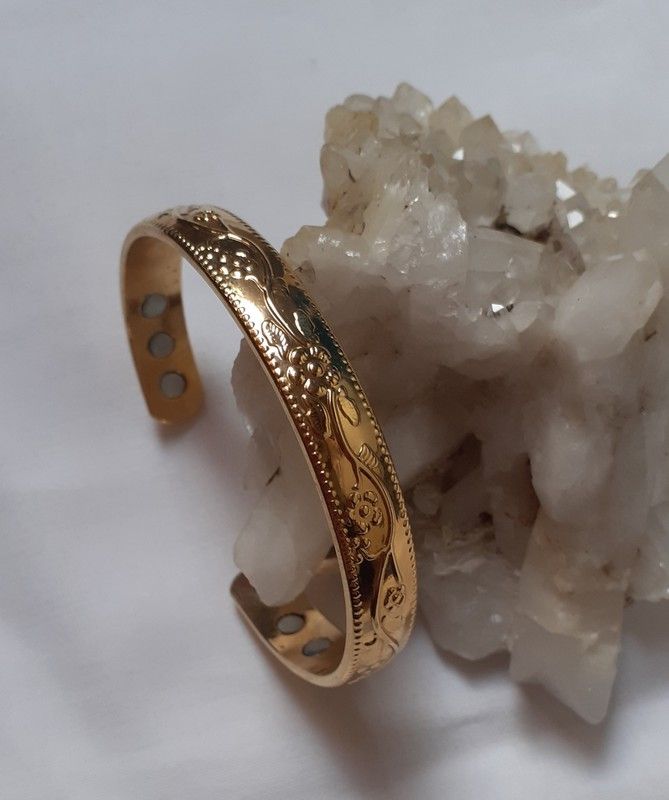 Bracelet manchette en cuivre avec 6 aimants en néodyme, vertus thérapeutiques.