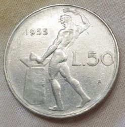 lot de 2 pièces de monnaie 50 lires 1954 et 1955.