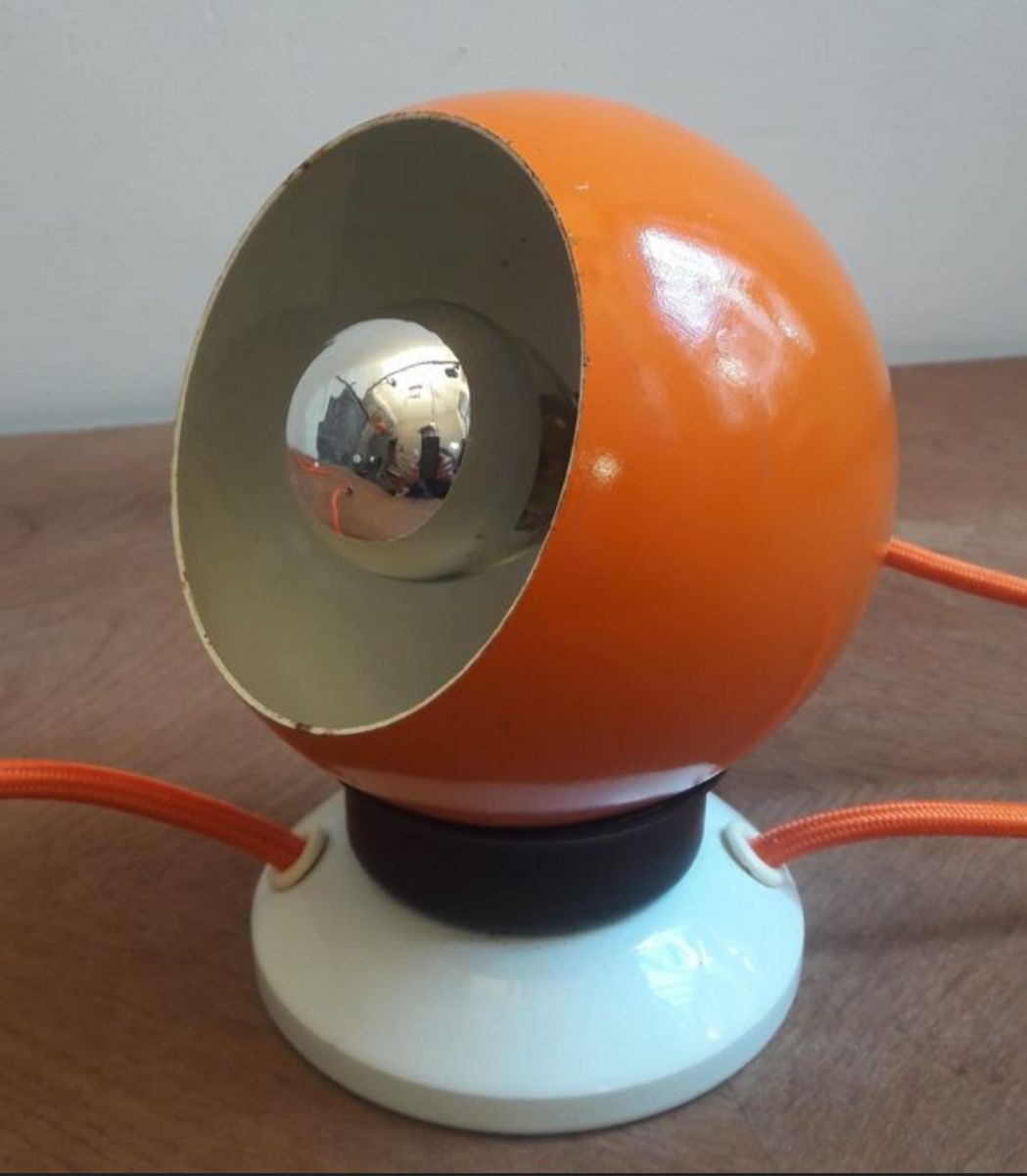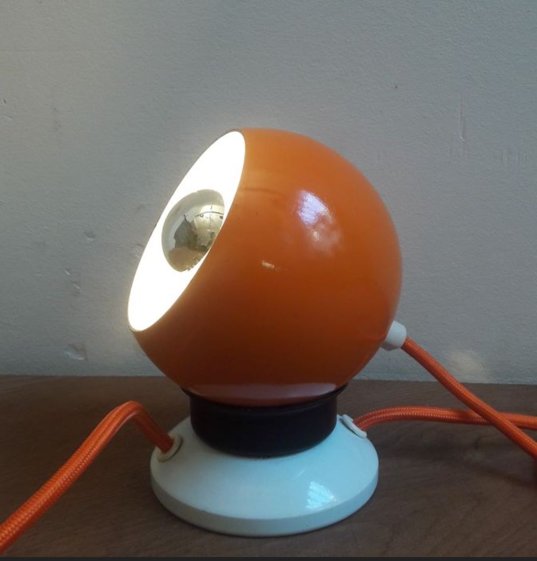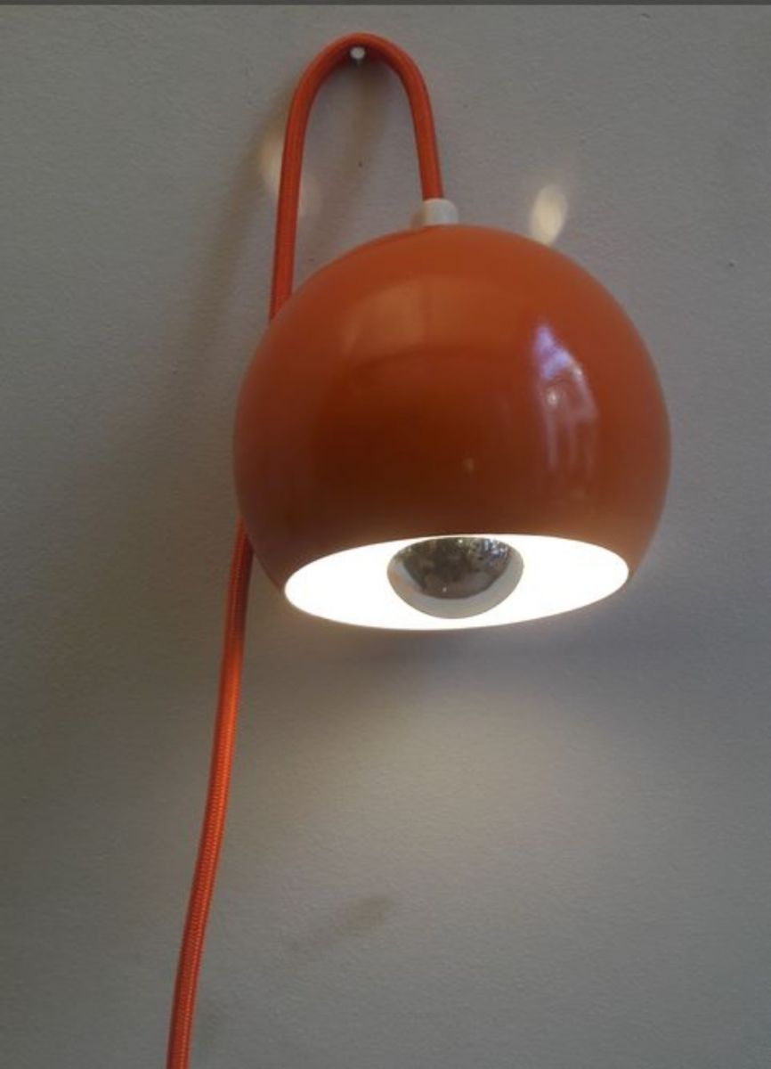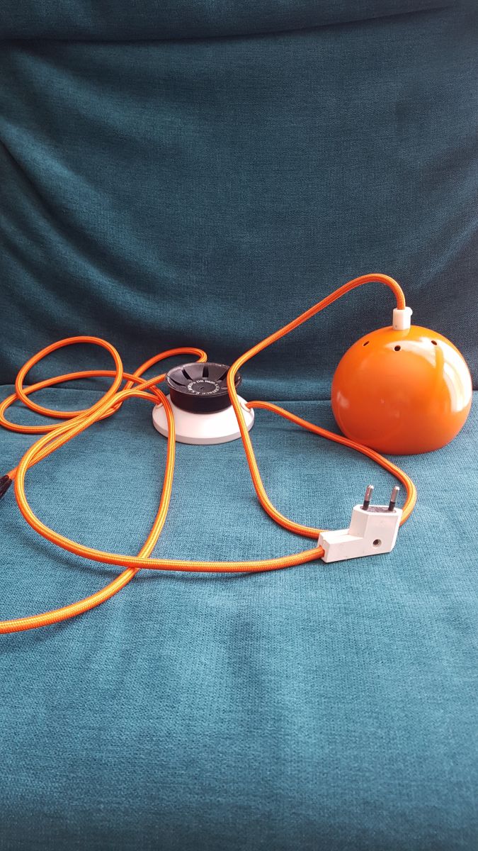 La lampe 503 a été rééquipée d'un long câble de 3m en coton tressé orange. Il est maintenant plus facile de désolidariser le globe de son support magnétique pour la suspendre où vous voulez (voir photo)