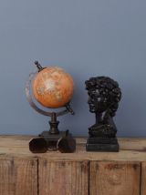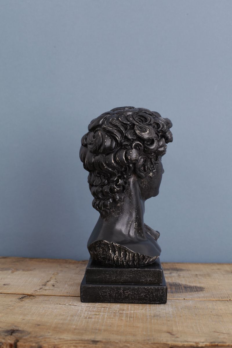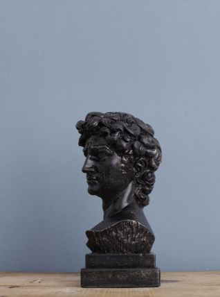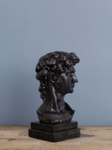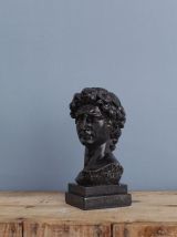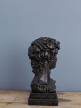 Buste en bêton plein ciré noir. Très belle patine. Jolie petite pièce de décoration, qui peut se placer facilement sur un bureau, une étagère. Dans son jus, mais en bon état. Hauteur totale: 21 cm. Largeur du socle: 9 cm.