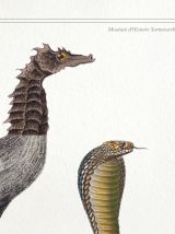 Chimères composées avec 4 anciennes gravures datant de 1850. C’est une manière étonnante et ludique de redécouvrir ces superbes gravures d'époque. Ici, le cariapocampe de mangrove et le grand najachot. Pour amateur-rice-s d'illustrations hors des sentiers battus ! Tirage d'art réalisé en impression pigmentaire de très haute qualité sur papier 300gr. Le résultat est d’une grande précision, un rendu identique à une sérigraphie ou l’offset, mat et velouté (c’est la qualité des tirages de galeries d’art). Tirage vendu seul sans le cadre (possibilité de l’obtenir encadré). D’autres chimères disponibles. Format a4 = 30 X 21 cm.