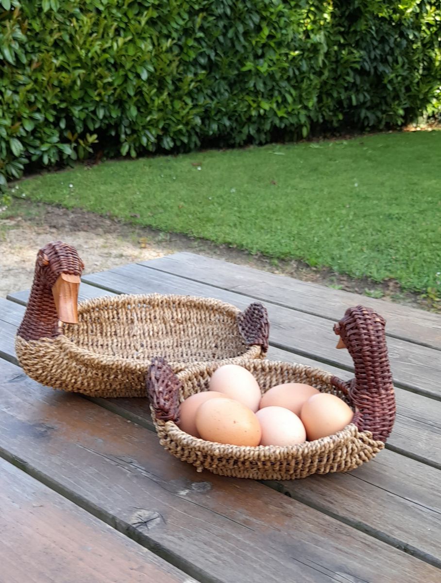 Peuvent servir de corbeille à fruit, à fruits à coque, à œufs ou à pain, et même de vide poche, les idées ne manquent pas.