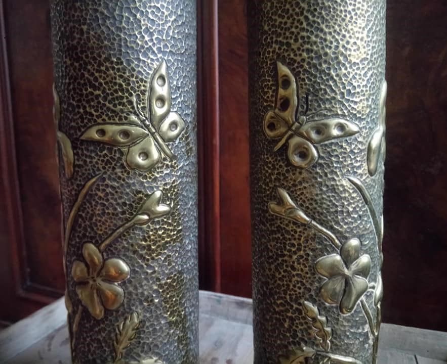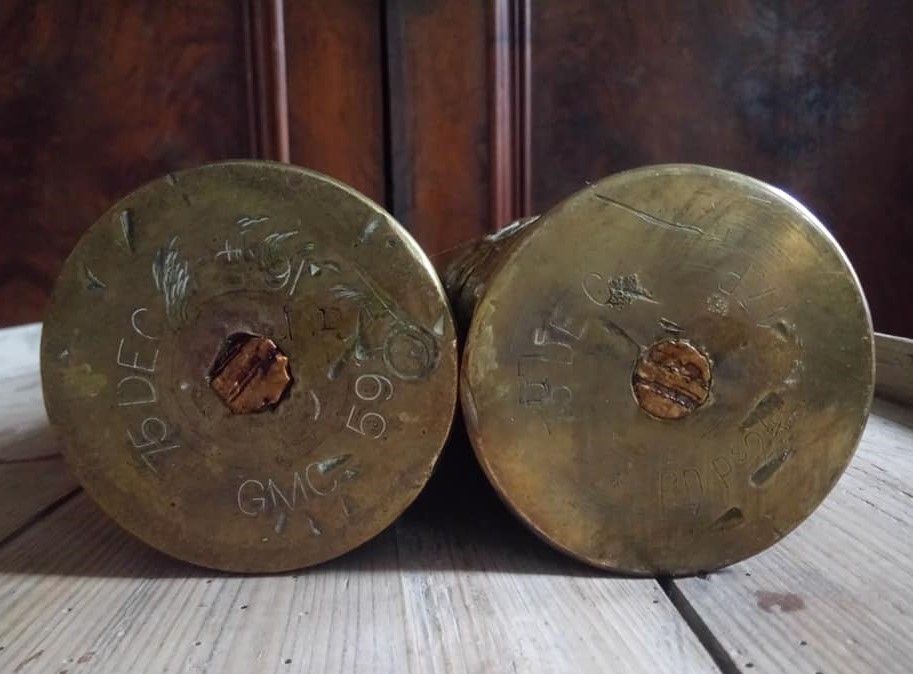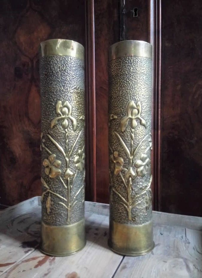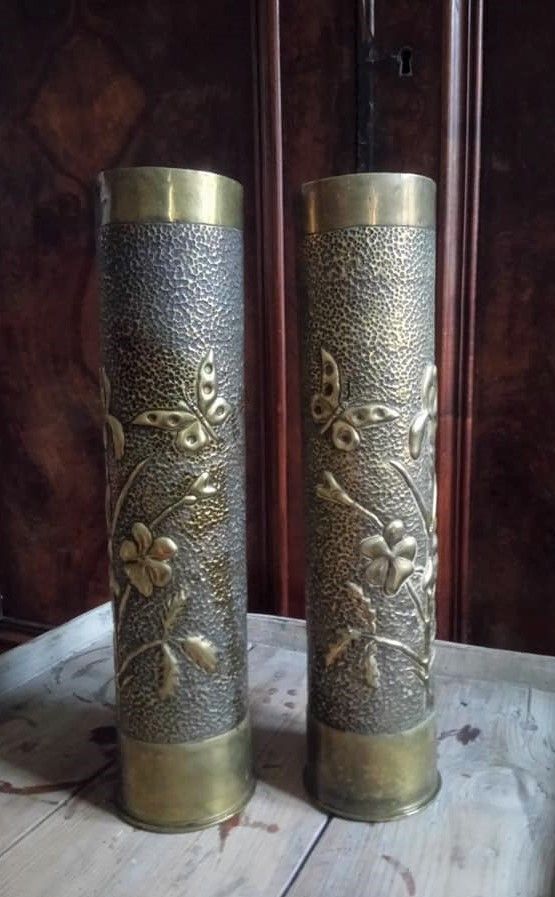 Paire de douilles d'obus sculptées (Art des tranchées)
