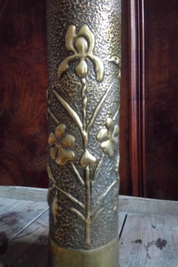 Jolie paire de douilles d'obus sculptées en cuivre