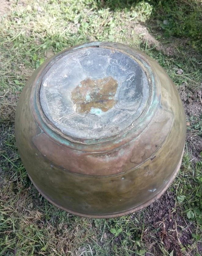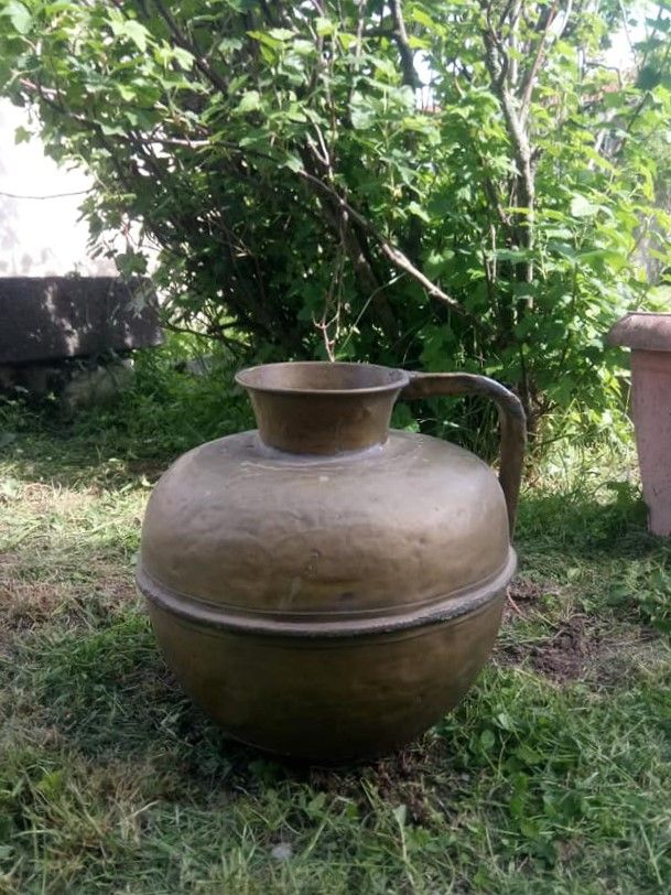 Ancienne grande cruche en cuivre martelé - Art populaire