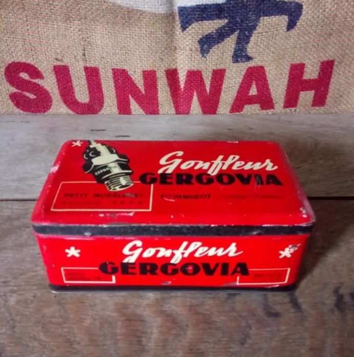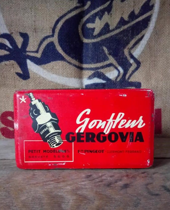 Ancienne boite en tôle lithographiée Gonfleurs Gergovia Ets Pingeot Clermont ferrand