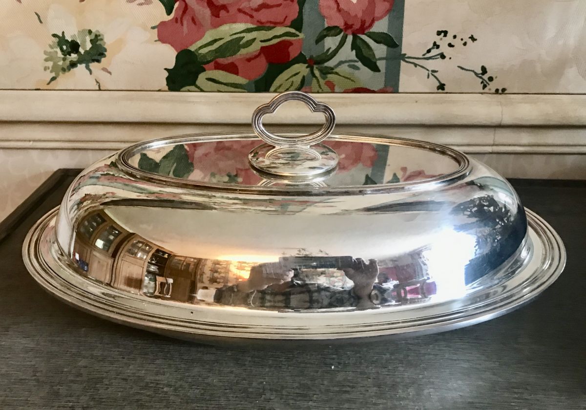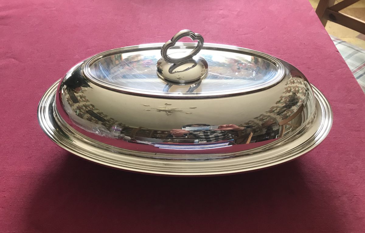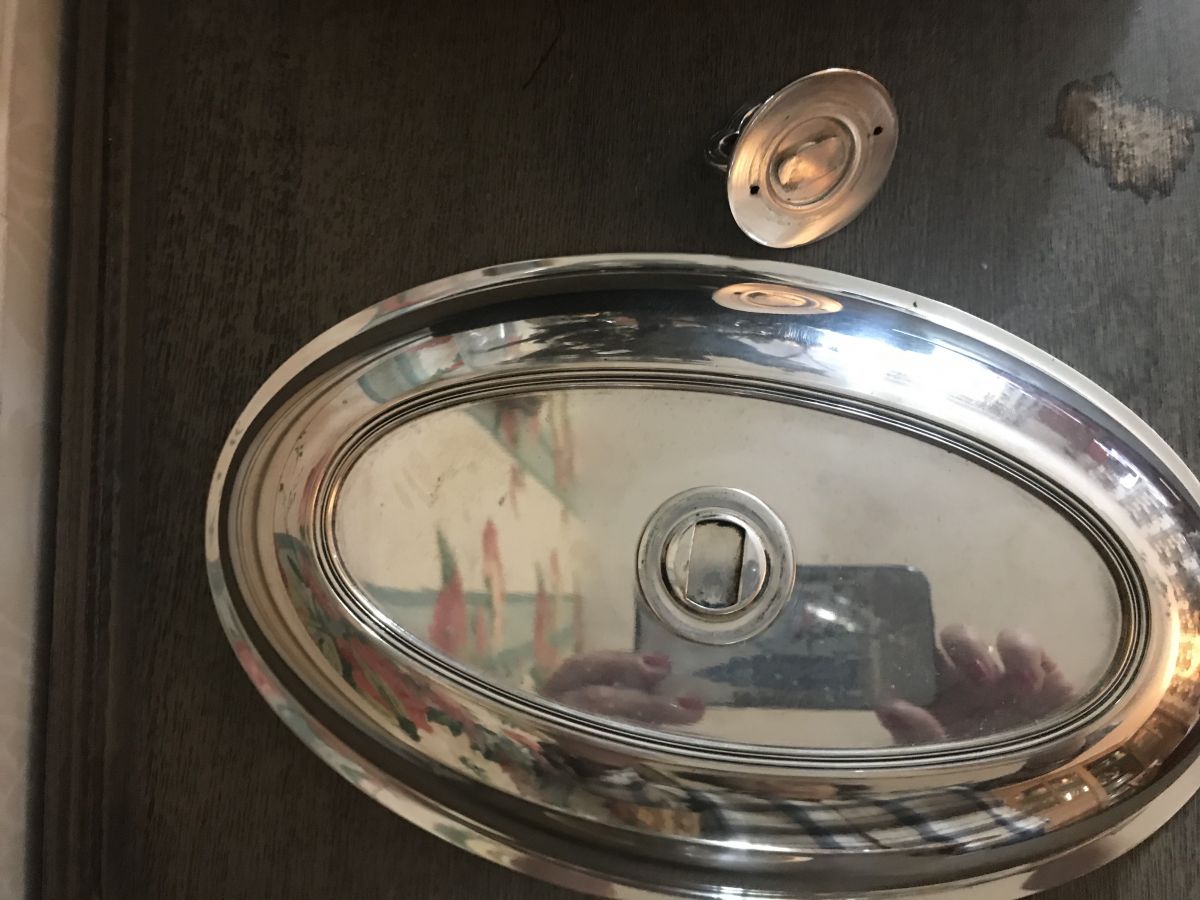 Rare et insolite légumier double usage Louis XV, bâté, métal argenté français.