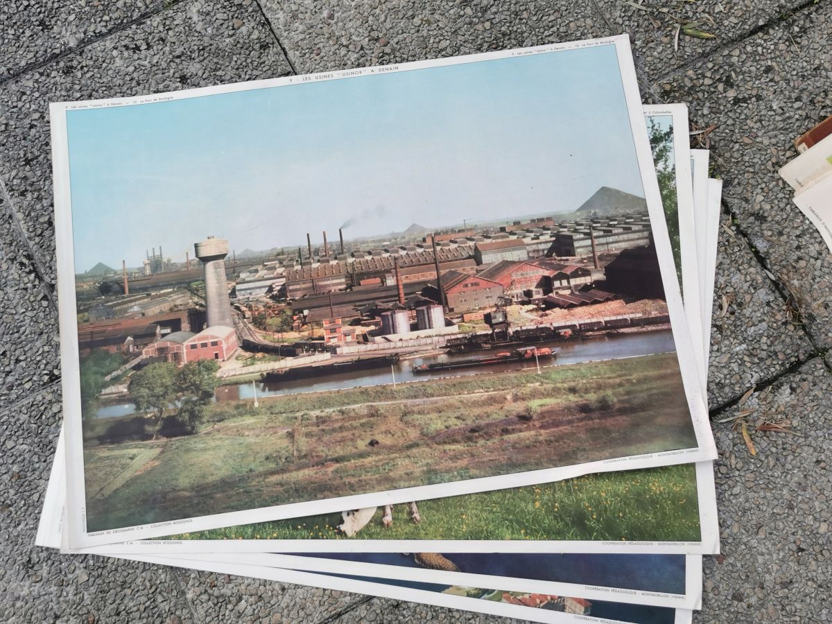 Lot de plusieurs affiches scolaires anciennes certaines en couleur, d'autres en quadrichromie, 4 style photo de géographie + le support à 50 euros. Me demander si besoin de plus d'infos (thème, nombre...)