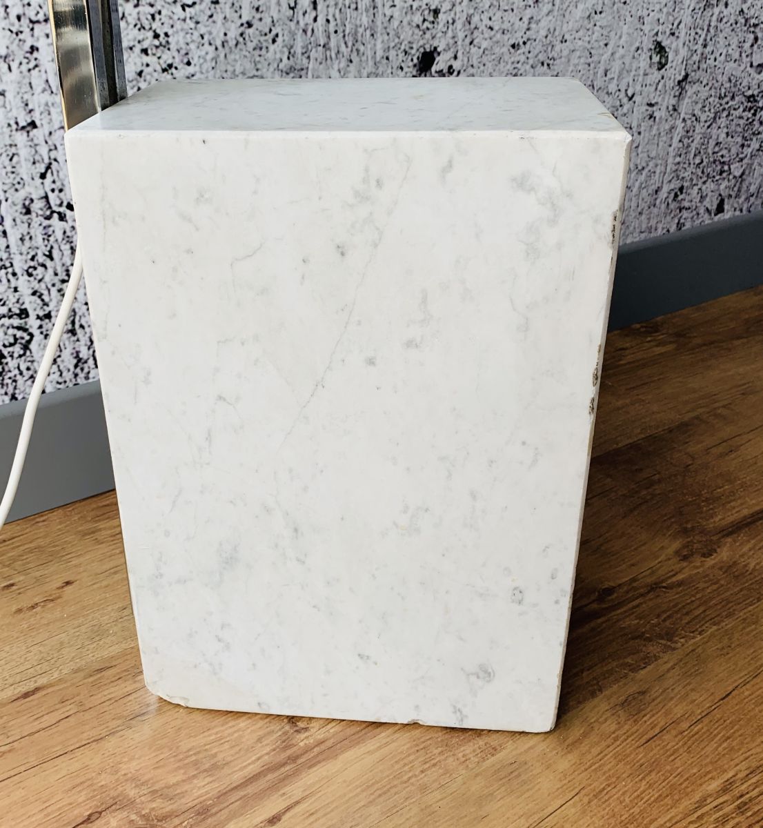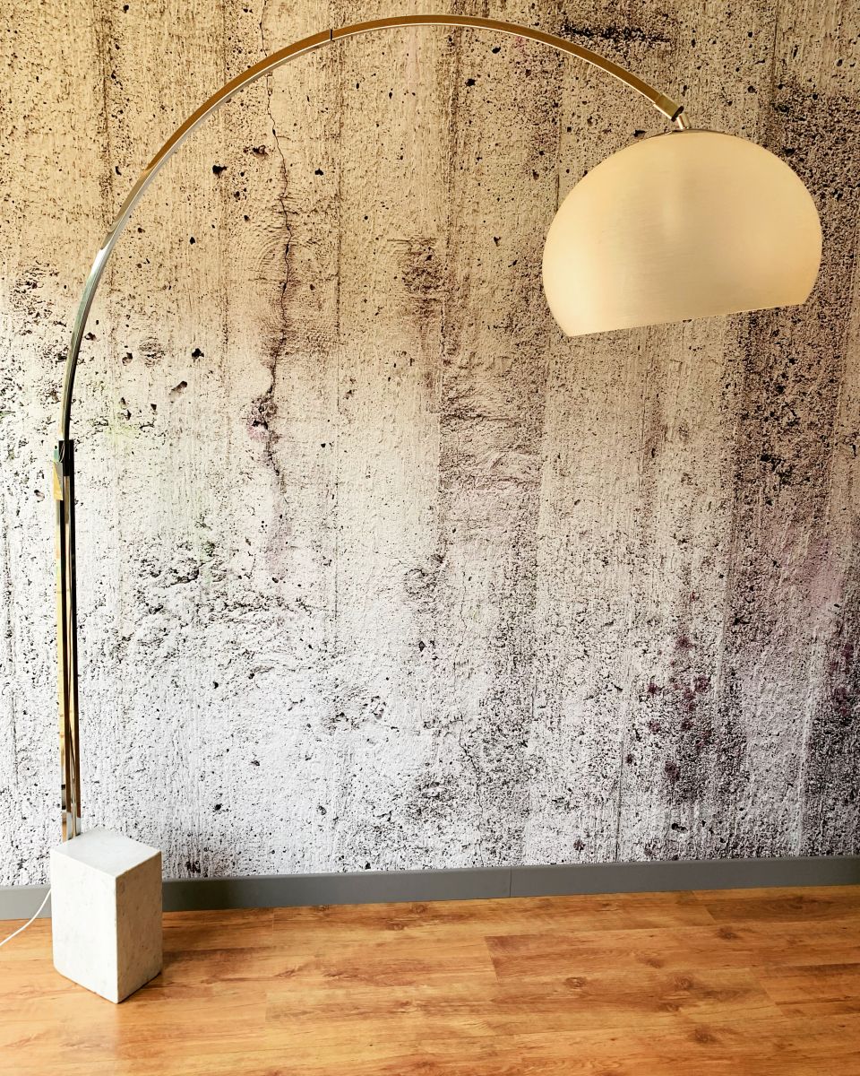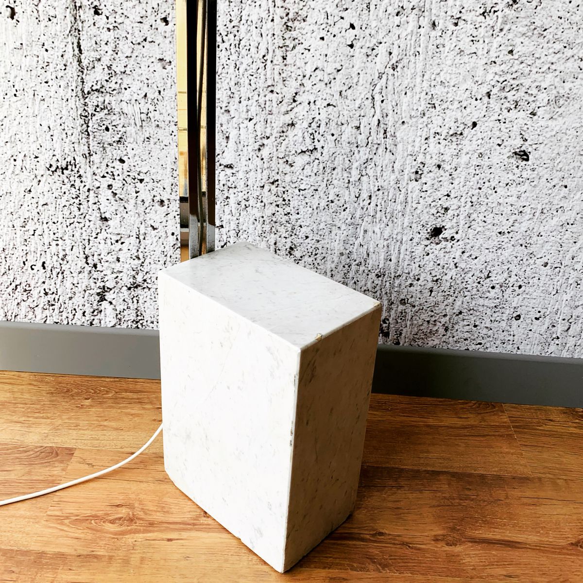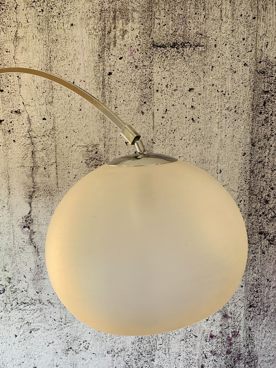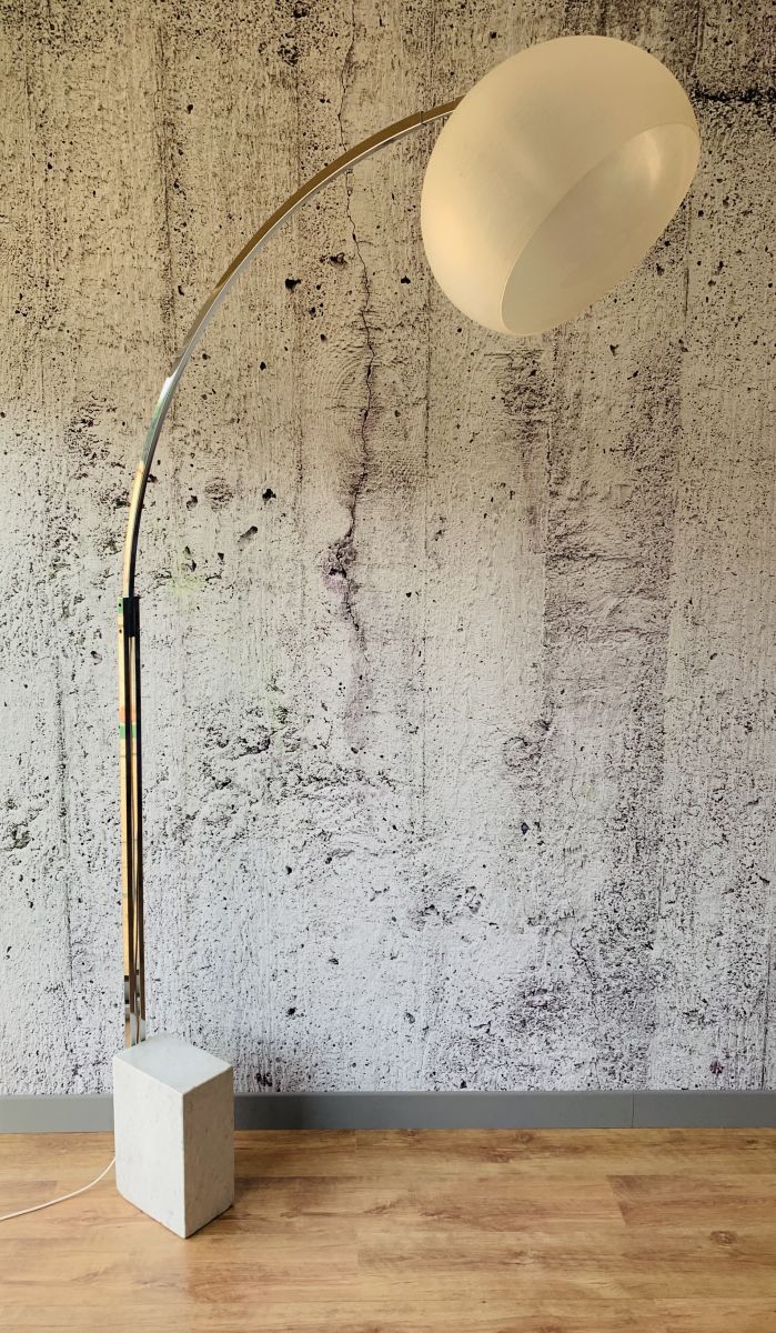 Superbe luminaire arc avec pied marbre. Elle est dans un bel état de conservation avec quelques chocs sur le marbres comme le laisse voir les photos. Elle mesure 2, 18 mètres au plus haut et peut se régler en profondeur pour aller de 1, 30 à 1, 70 m. Le globe en résine blanche mesure 43 cm de diamètre.le pied marbre mesure 34x24x15 ( et pèse très lourd!!!) Une belle pièce de design italien à avoir dans son intérieur.