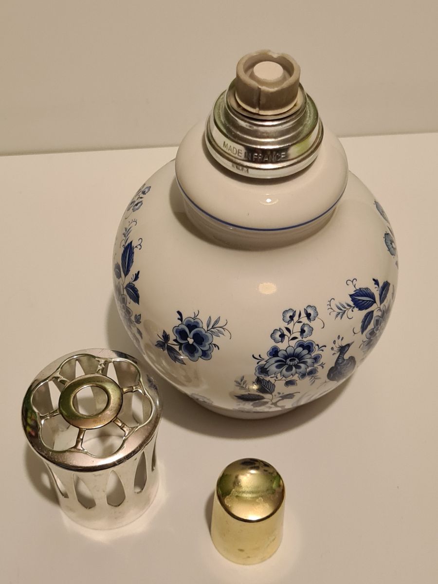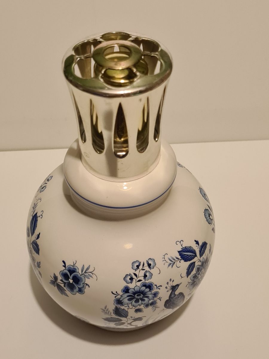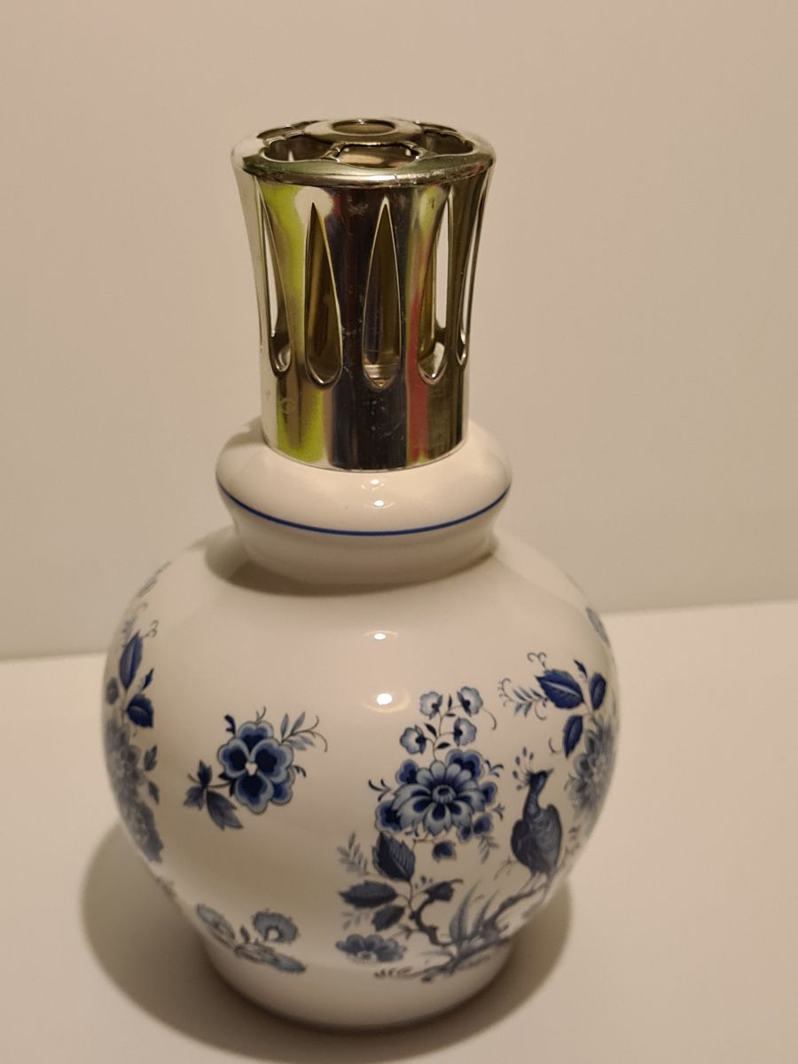 Lampe berger décor fleurs bleues en très bon état, sans fêle Dimensions : H. 9,5cm X L. 17cm X P. 9,5cm