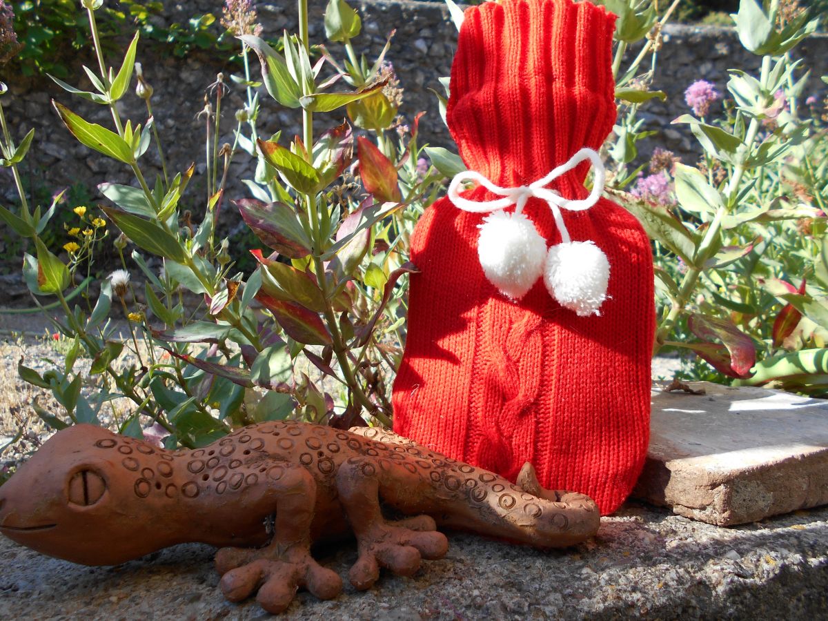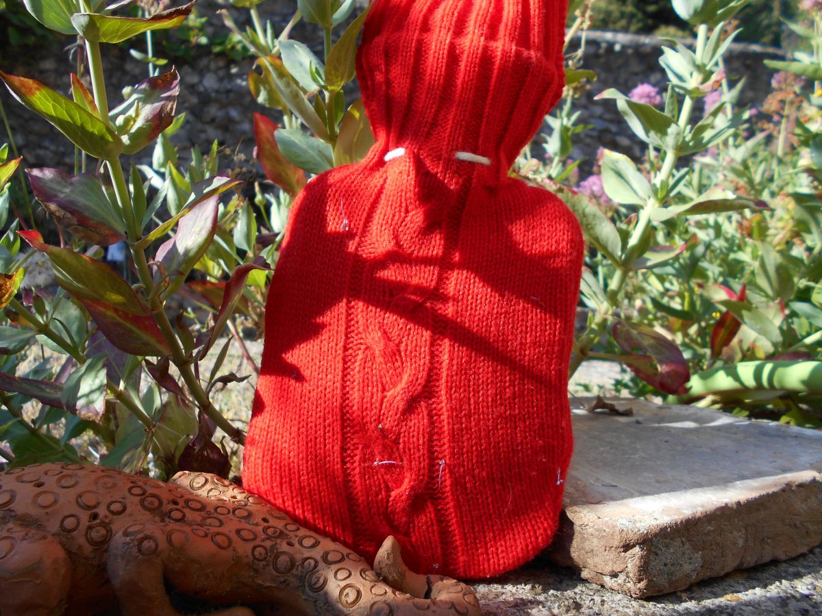 BOUILLOTTE VINTAGE ROUGE HABILLEE DE LAINE VINTAGE