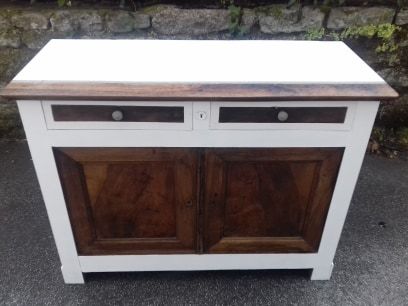 Ancien buffet en merisier remis au goût du jour.