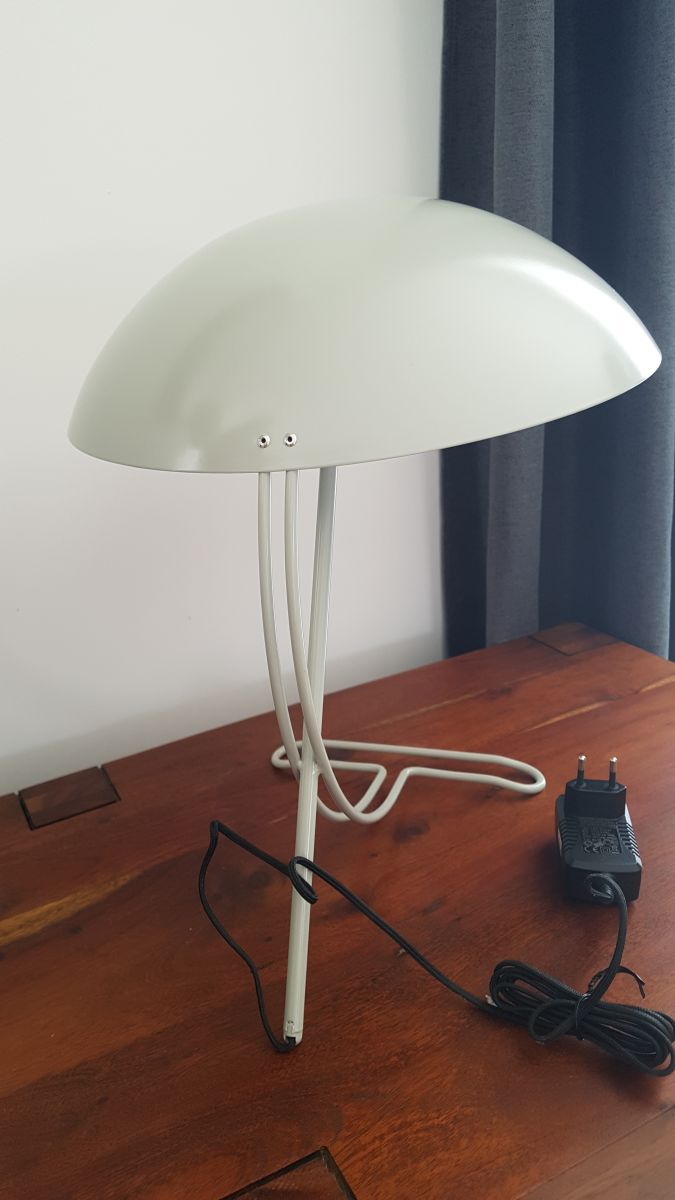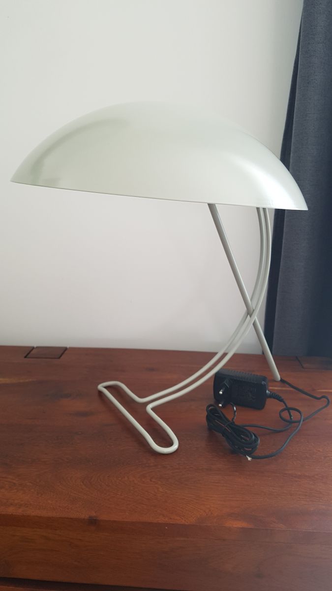 La lampe a une élégante couleur gris clair vintage. L'exemplaire que je vous propose ici est entièrement neuf et inutilisé et est livré dans son emballage d'origine (l'emballage a quelques traces de stockage / transport).
