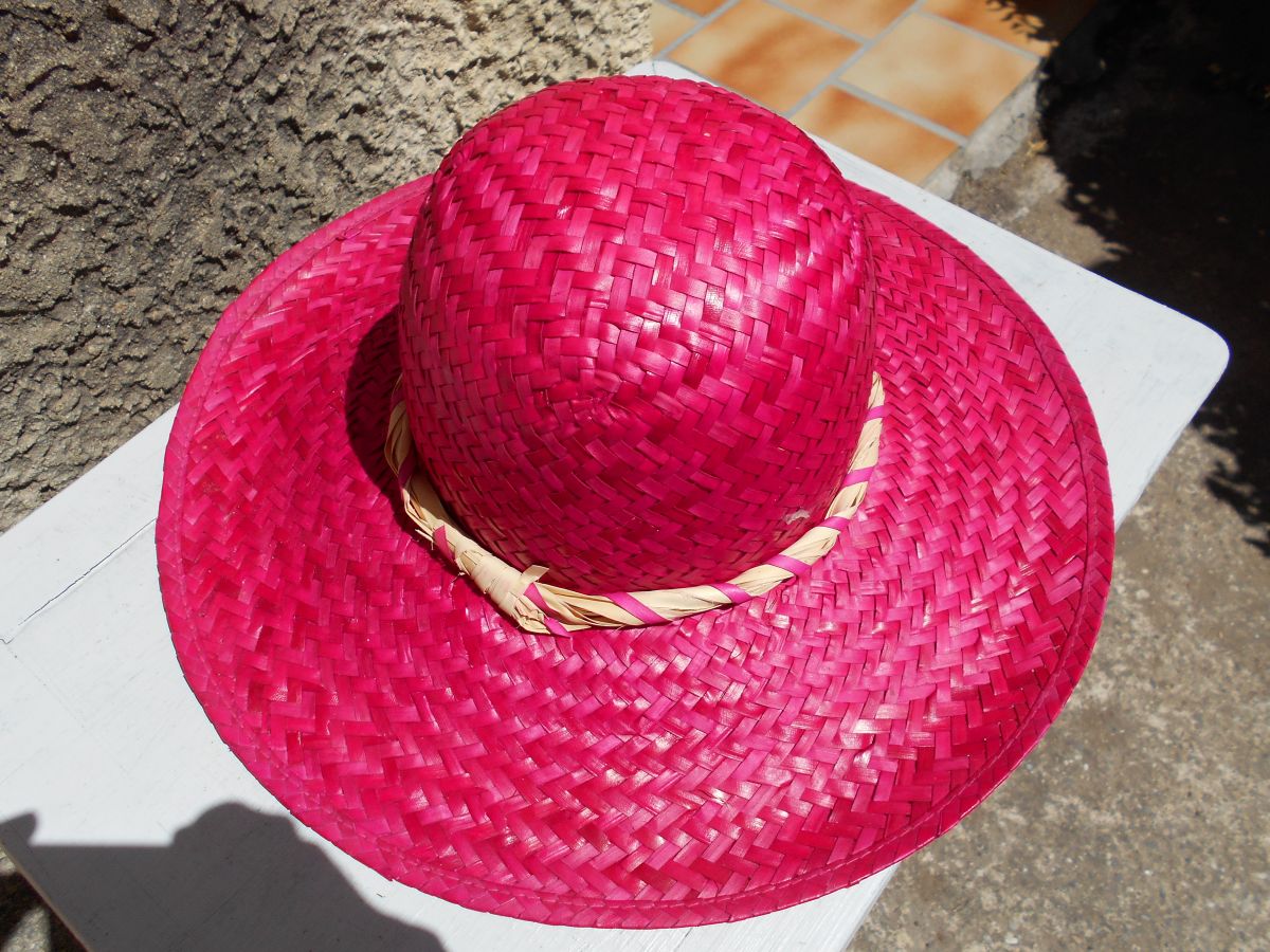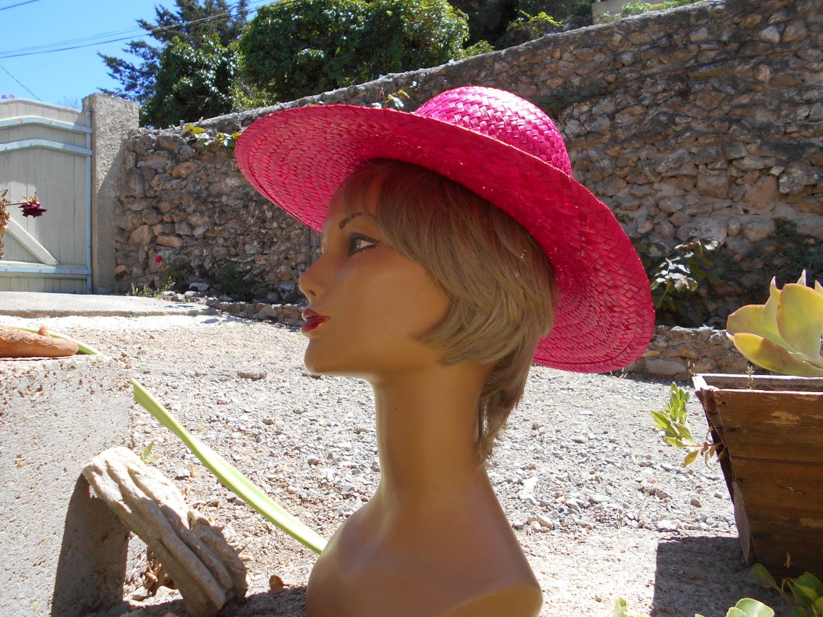 CHAPEAU PAILLE FUSCHIA VINTAGE T 55 CM