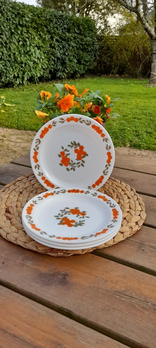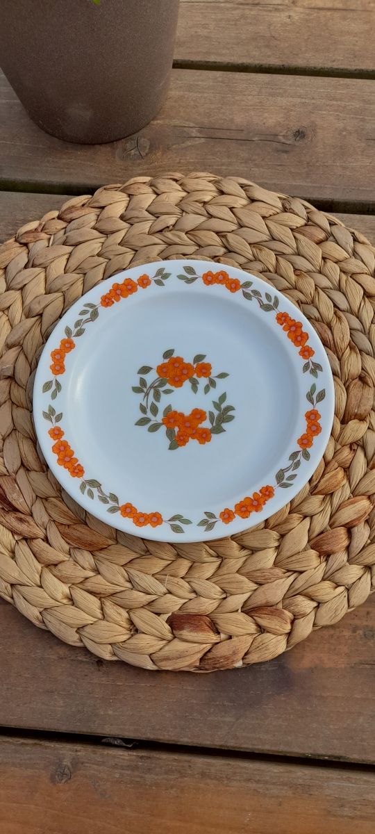 Typique des années 70, ce modèle lotus aux petites fleurs orange sera du plus bel effet sur une table d'été ensoleillée et pleine de peps..on en a besoin ????