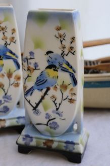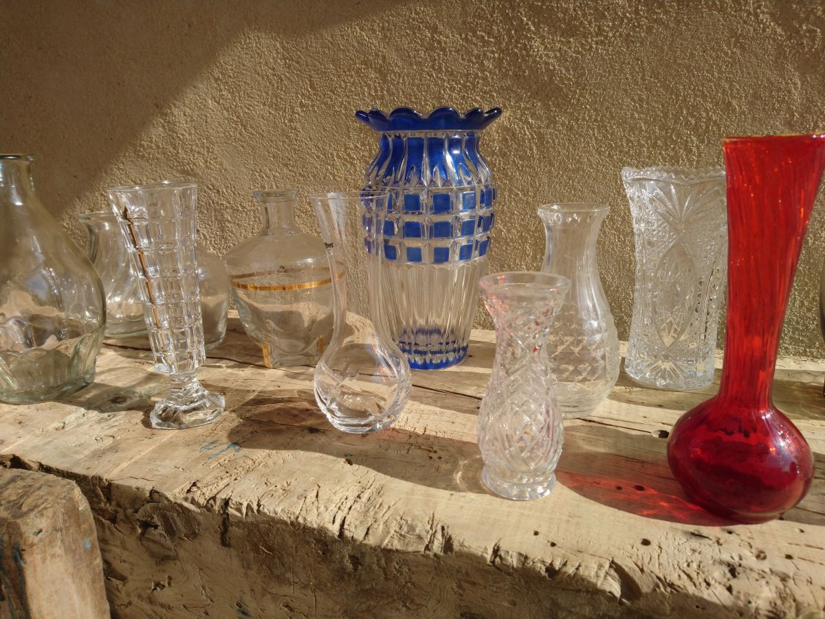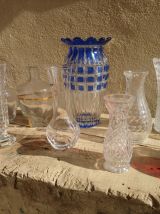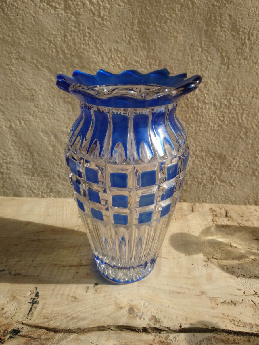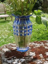 Vase en verre vintage. Une jolie couleur bleue pour de belles lignes ! En très bel état (seuls quelques petits manques de bleu sur 2/3 carrés).