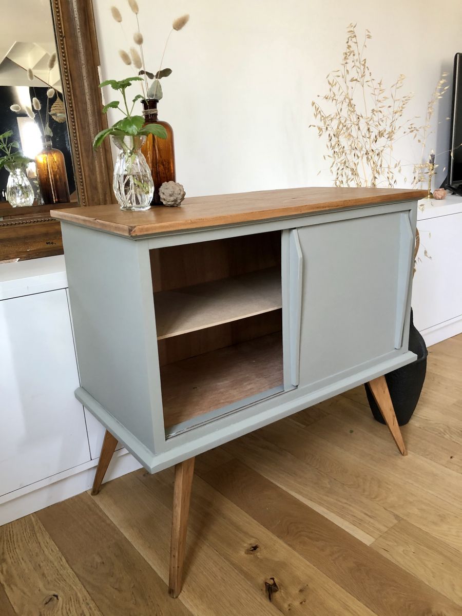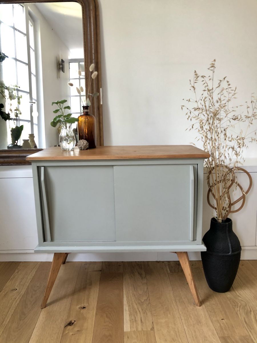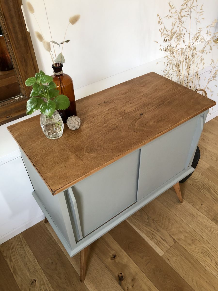Elégante mini enfilade perchée sur de jolis pieds compas des années 50.