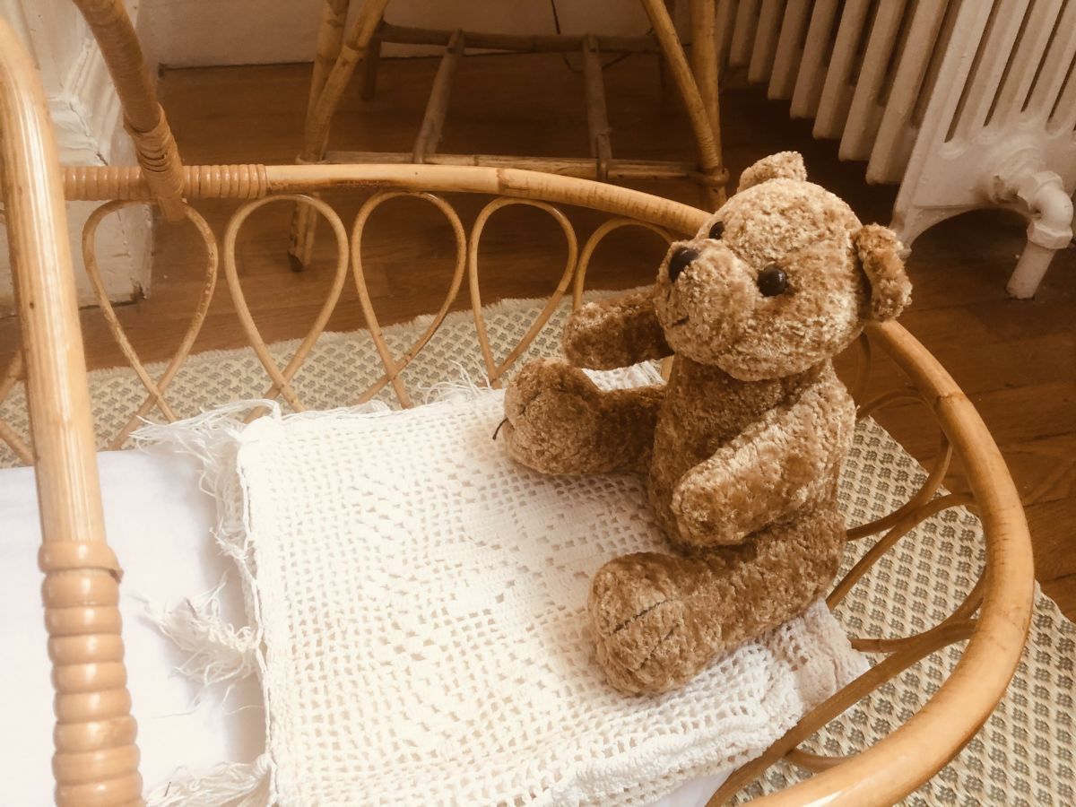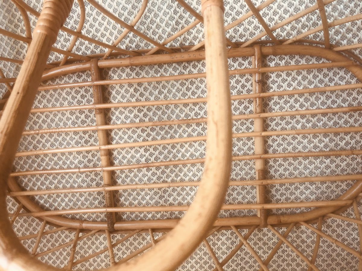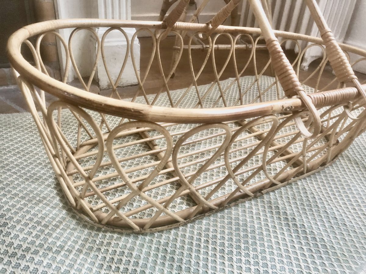 Authentique et très joli couffin en osier et rotin années 50-60. Parfait état. Aucune branche cassée.