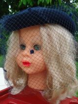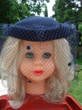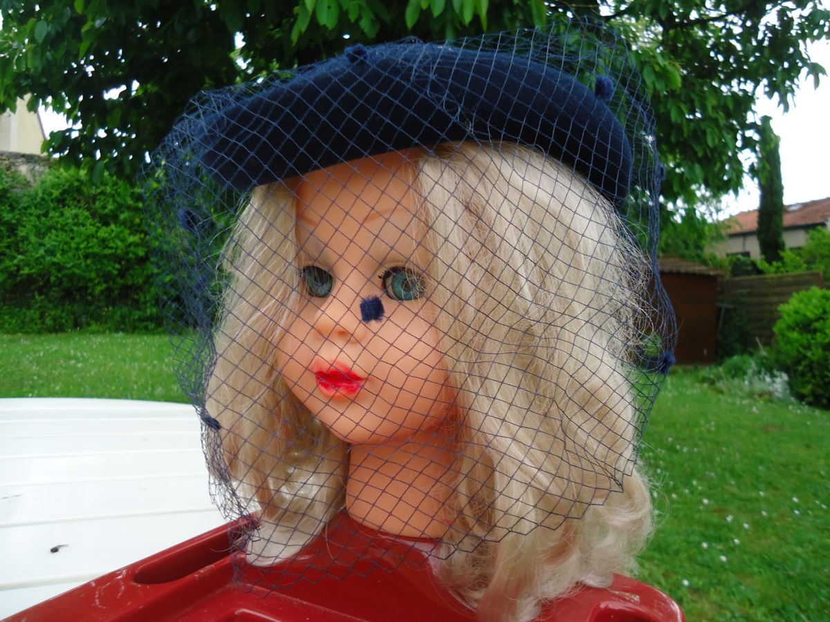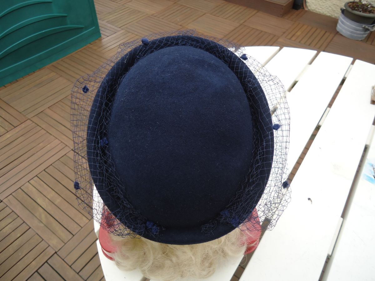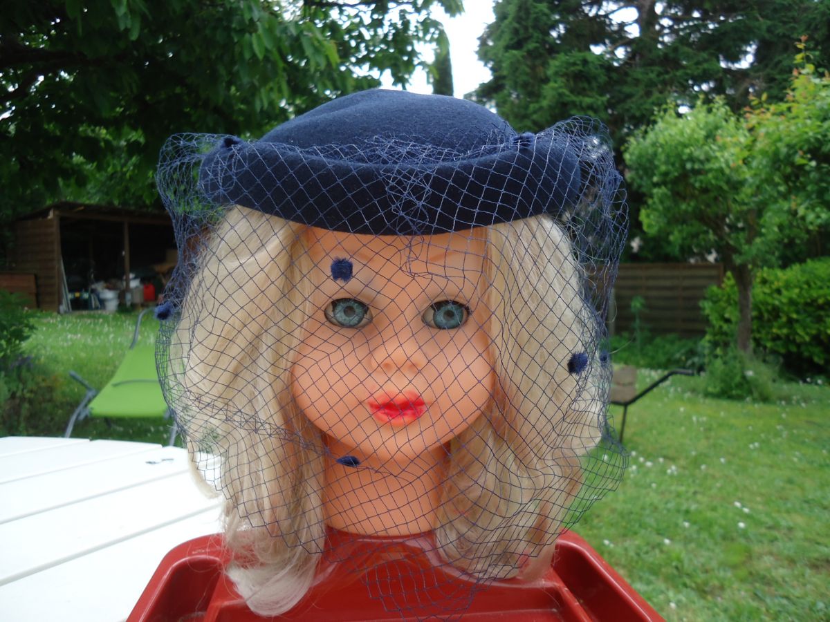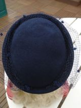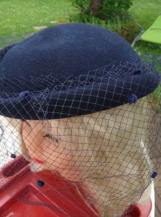 Chapeau voilette marine en laine feutrée