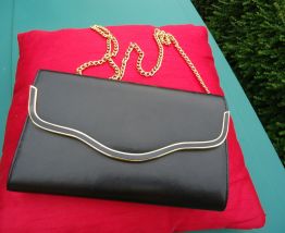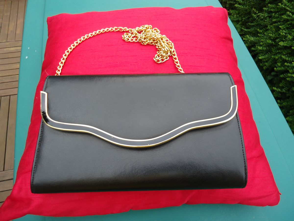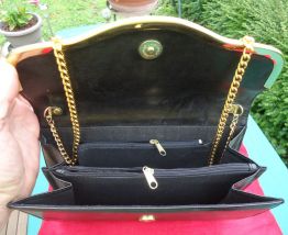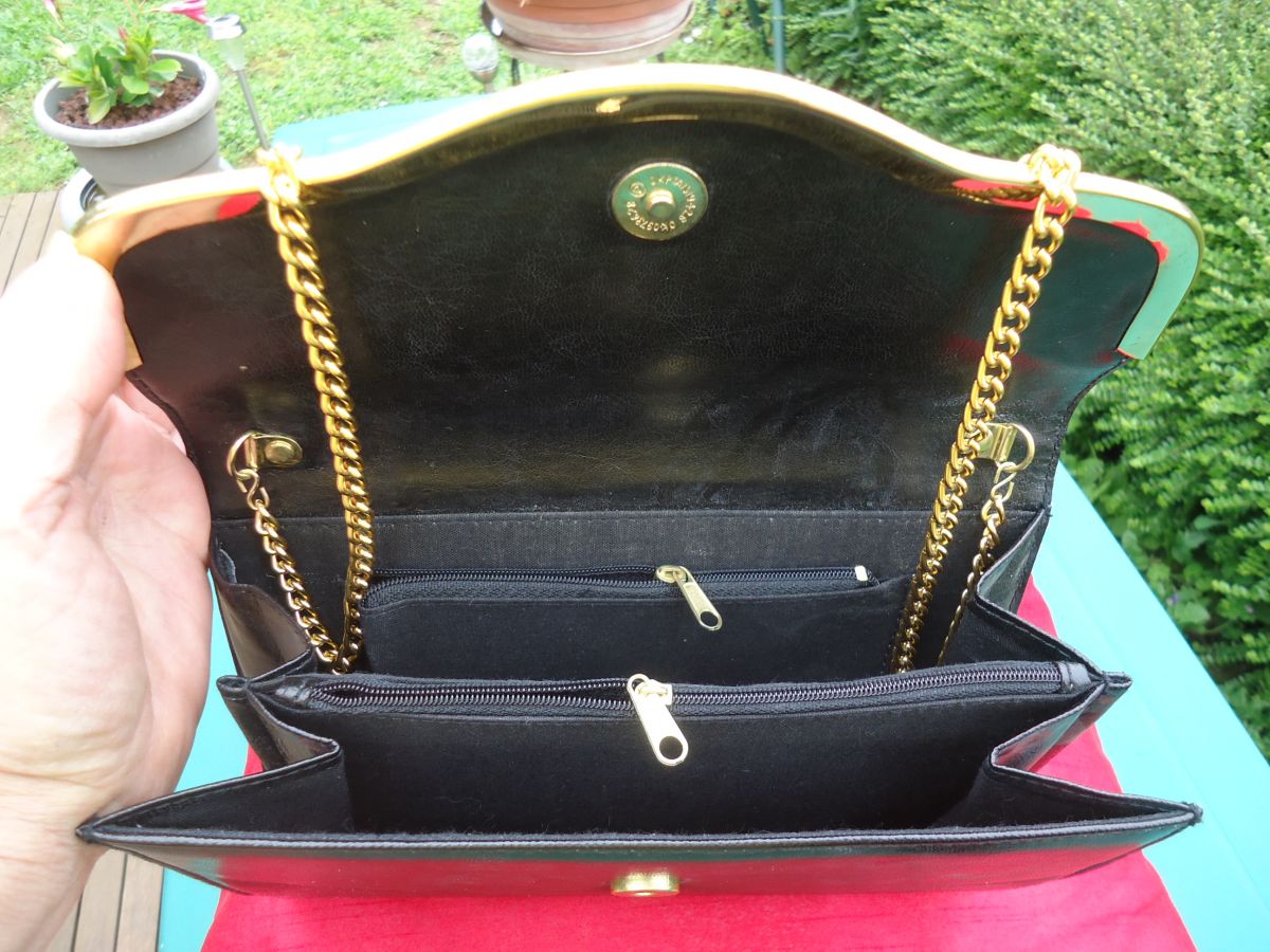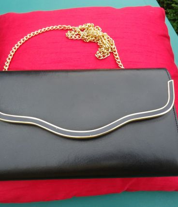 Sac noir4 poches chaine 50cm liseret noir vernis et doré