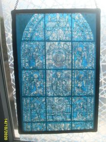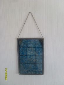 Paire de cadres photos retro en tôle ciselée et peinte, verre et dos en bois, avec 2 petites images d’epoque ( enluminures)
